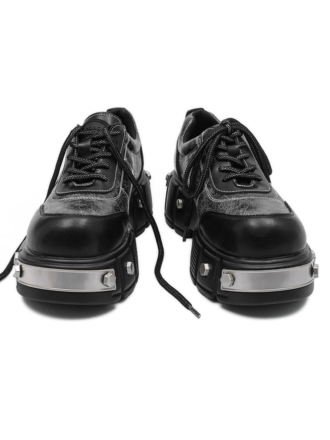 Metal Plate Chunky Leather Shoes Streetwear Punk