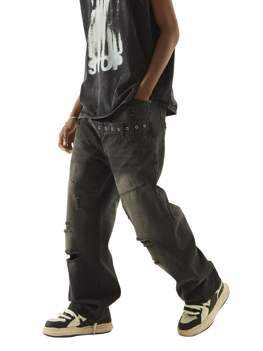 Stand out with the Vintage Washed Distressed Jeans Streetwear — crafted from denim for comfort and durability. This piece features modern streetwear aesthetic, bringing a bold edge to your look. Perfect for layered outfits and modern streetwear lovers.