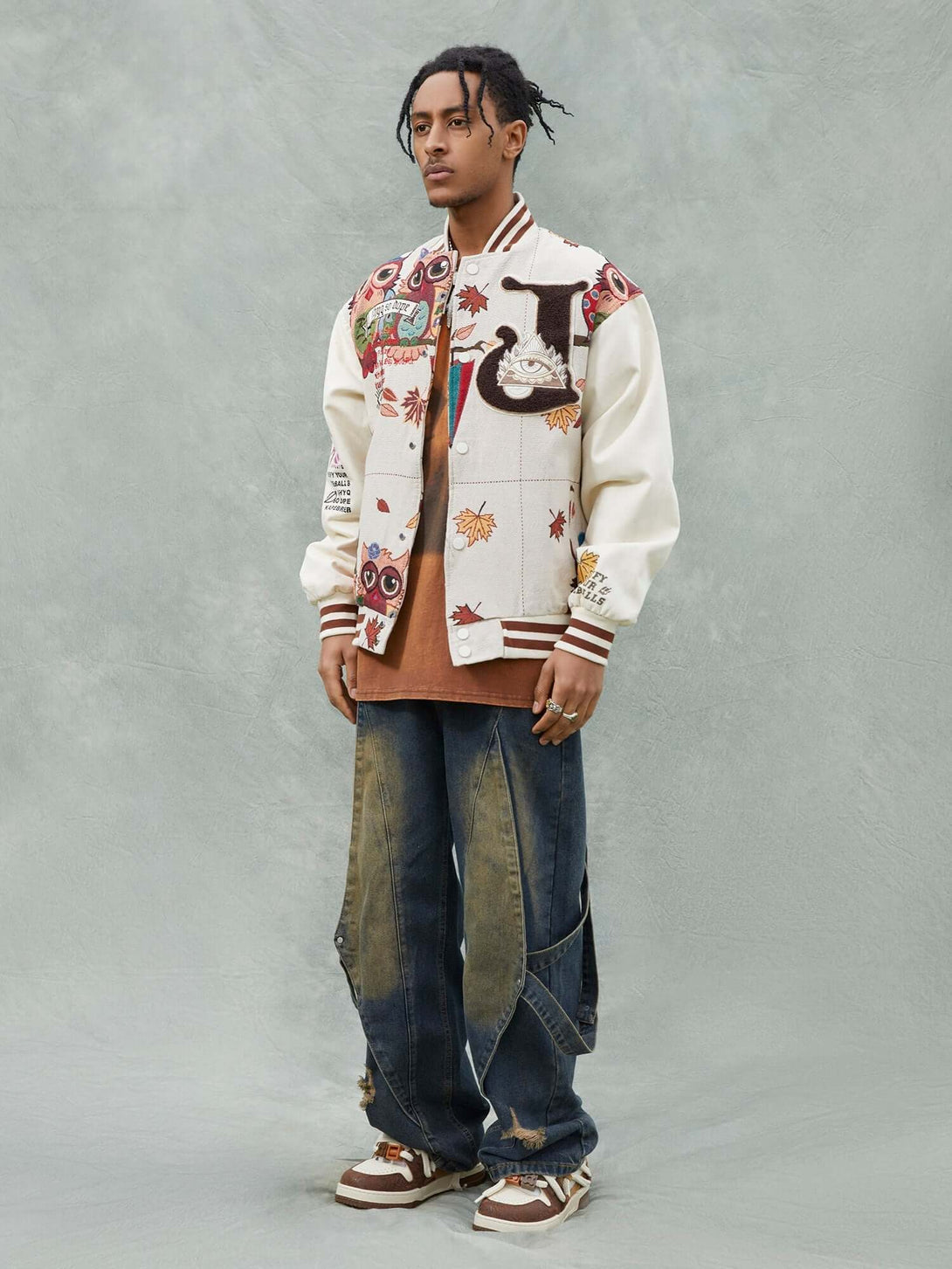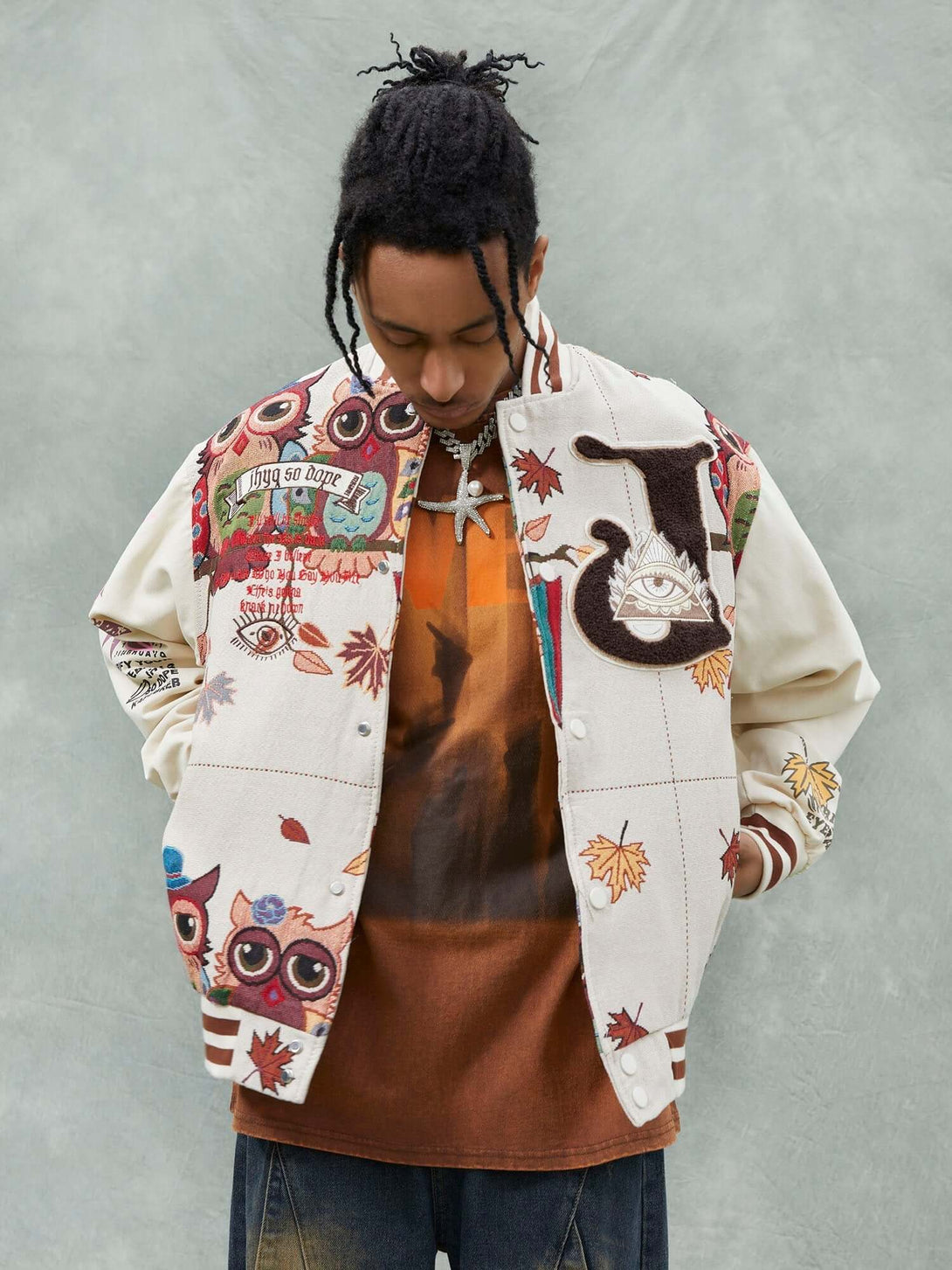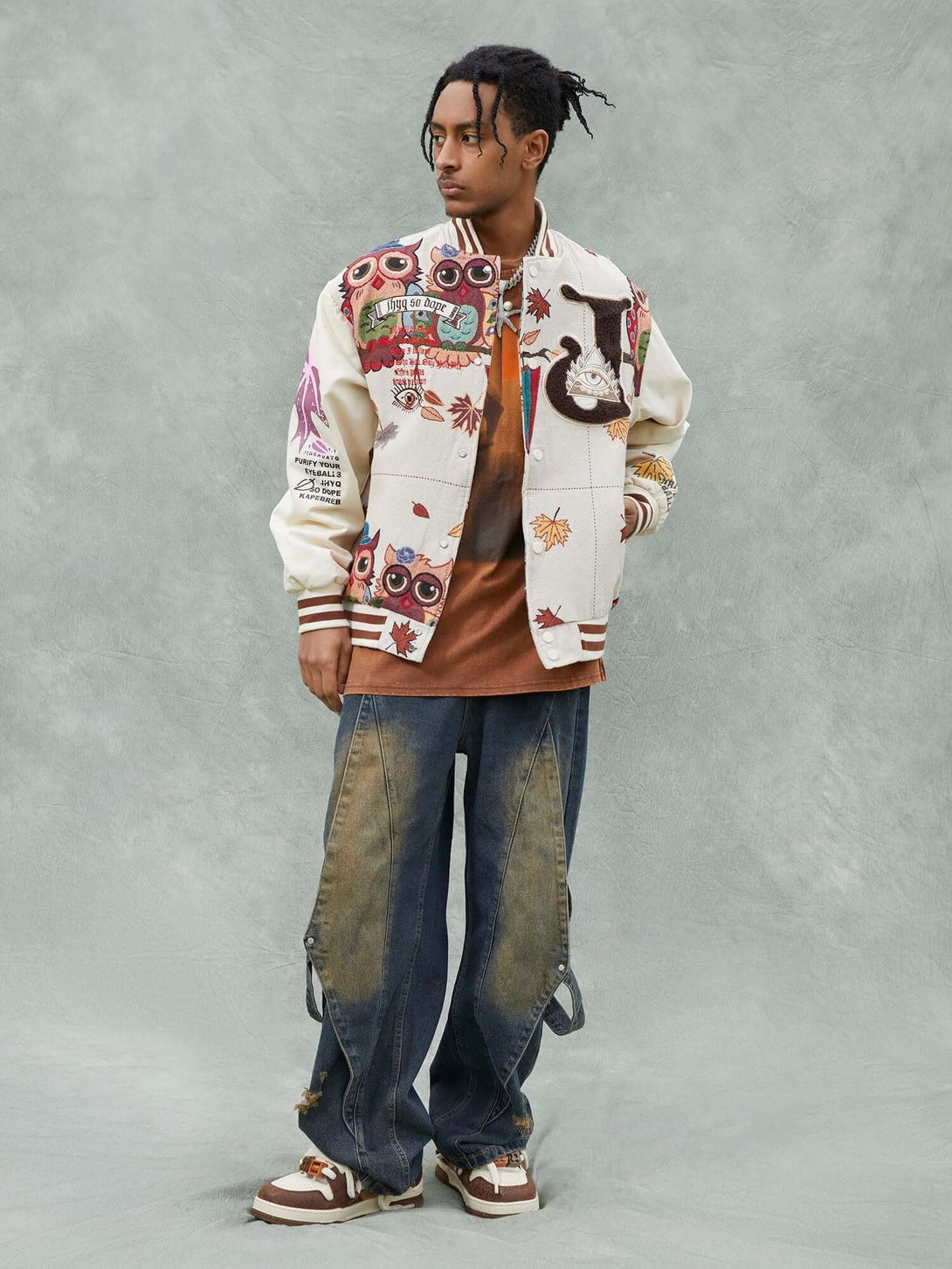Owl Patch Embroidered Baseball Jersey Streetwear