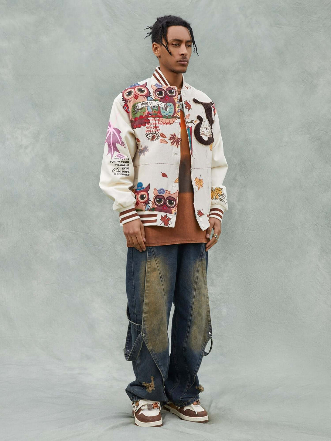 Stand out with the Owl Patch Embroidered Baseball Jersey Streetwear — crafted from cotton for comfort and durability. This piece features decorative patchwork, bringing a bold edge to your look. Perfect for layered outfits and modern streetwear lovers.