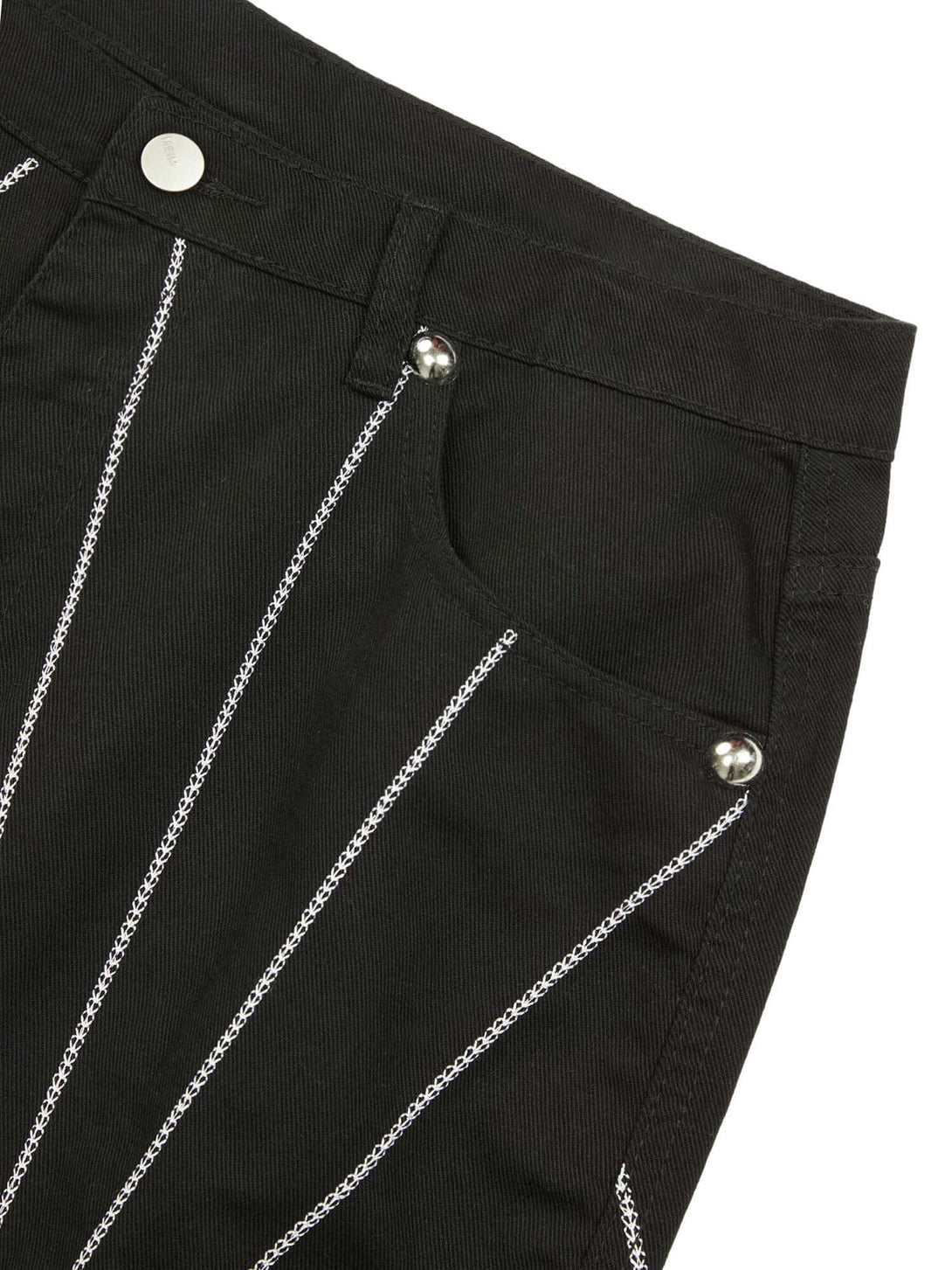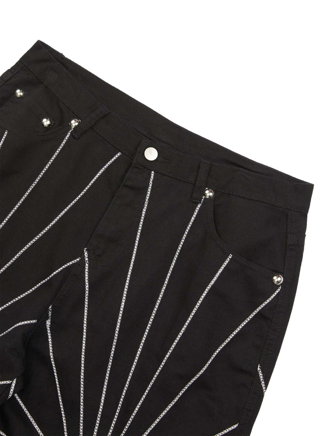 Heavy Spider Web Embroidered Topstitch Jeans Streetwear