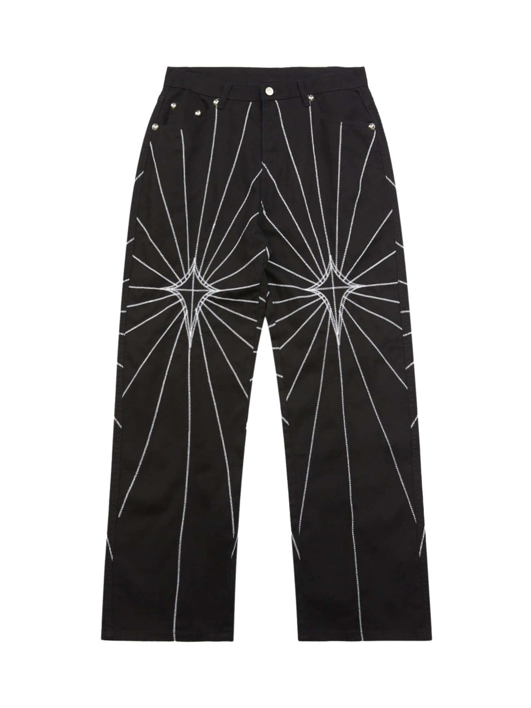 Stand out with the Heavy Spider Web Embroidered Topstitch Jeans Streetwear — crafted from denim for comfort and durability. This piece features modern streetwear aesthetic, bringing a bold edge to your look. Perfect for layered outfits and modern streetwear lovers.