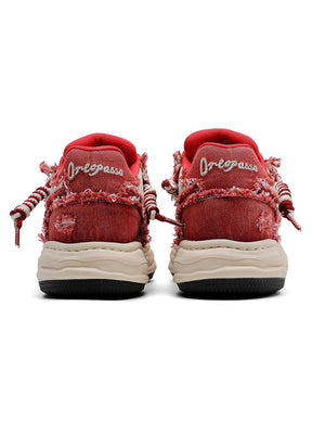 • Design Elements: Distressed upper, layered sole design, bold color contrast