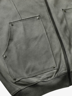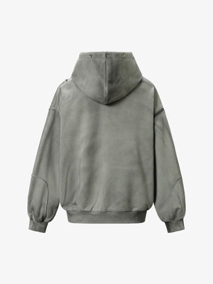 • Design Elements: Two Front Zippered Pockets, Stud Details on Hood, Full-Length Front Zipper