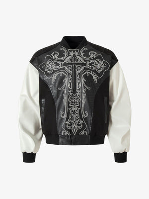 • Design Elements: Gothic Cross and Floral Embroidery, Contrast Sleeves