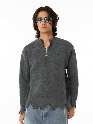 • Detail Features: Distressed Edges, Half-Zip Closure, Ribbed Cuffs and Hem