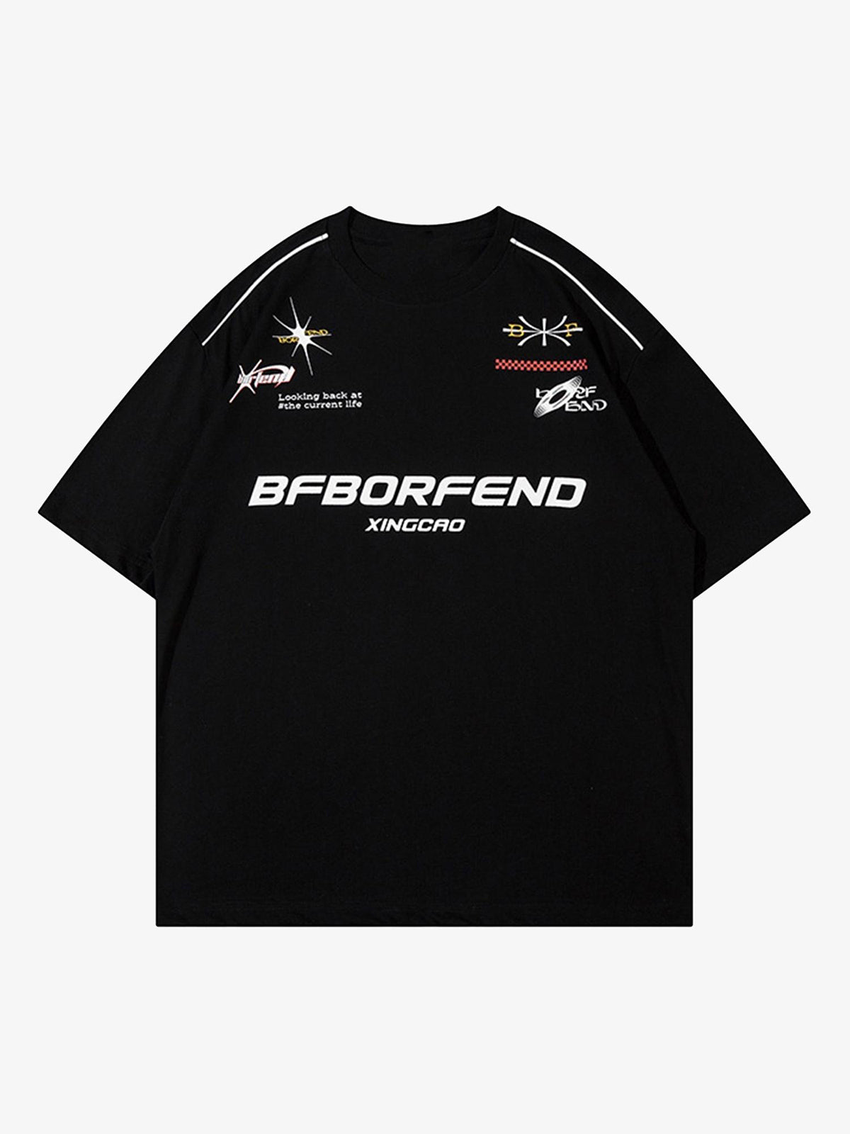 • Detail Features: Crew Neck, Short Sleeves, Graphic Print, Relaxed Fit