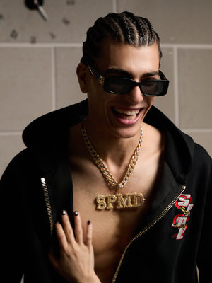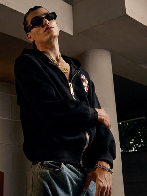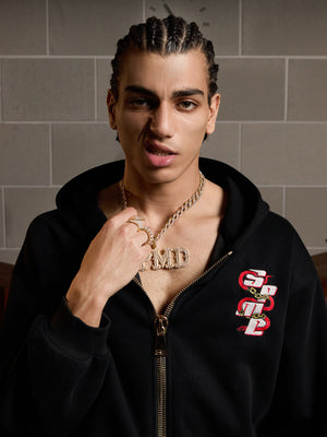 • Detail Features: Embroidered Logo, Gold Chain Necklace Included, Zippered Closure
