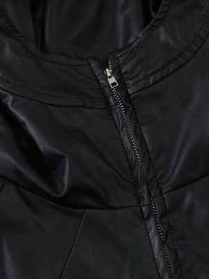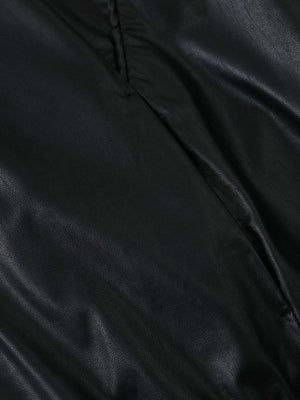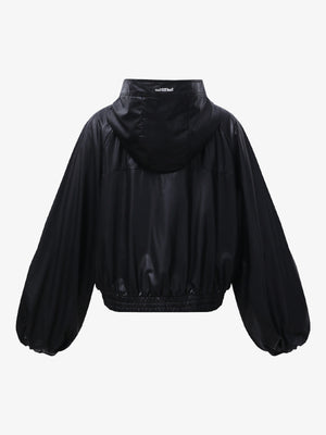 • Design Elements: High neck design, bubble sleeves, front zipper closure
