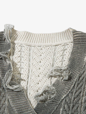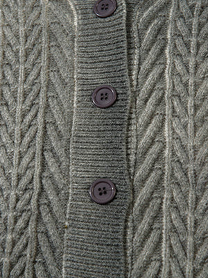 • Design Elements: Cable knit pattern, ruffled hem detail, button closure