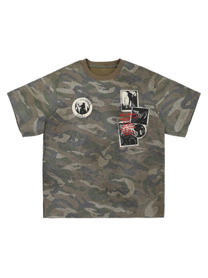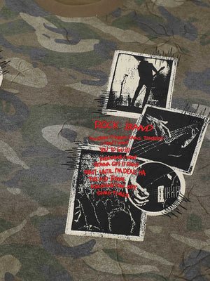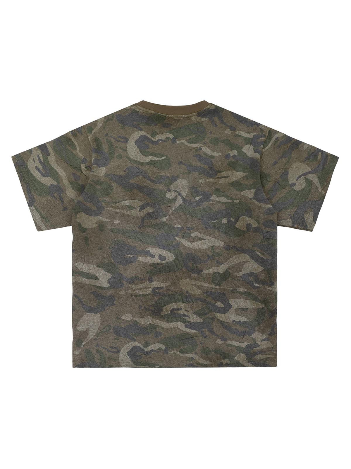 • Design Elements: Unique camouflage pattern, bold graphic prints, distressed details