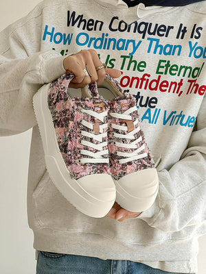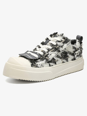 • Design Elements: Unique Plaid Pattern, Chunky Sole Design, White Lace-Up Closure