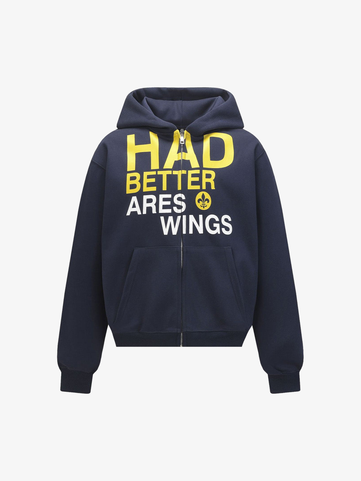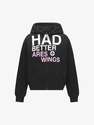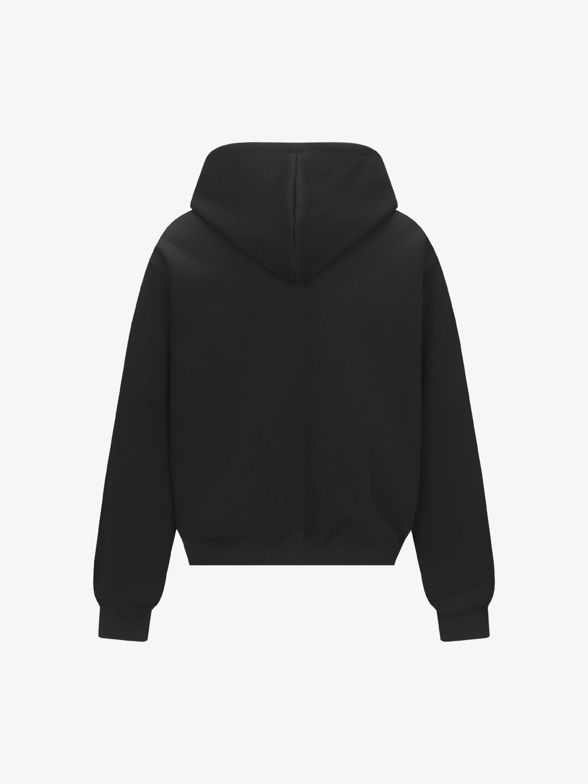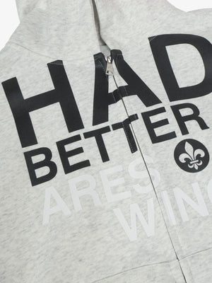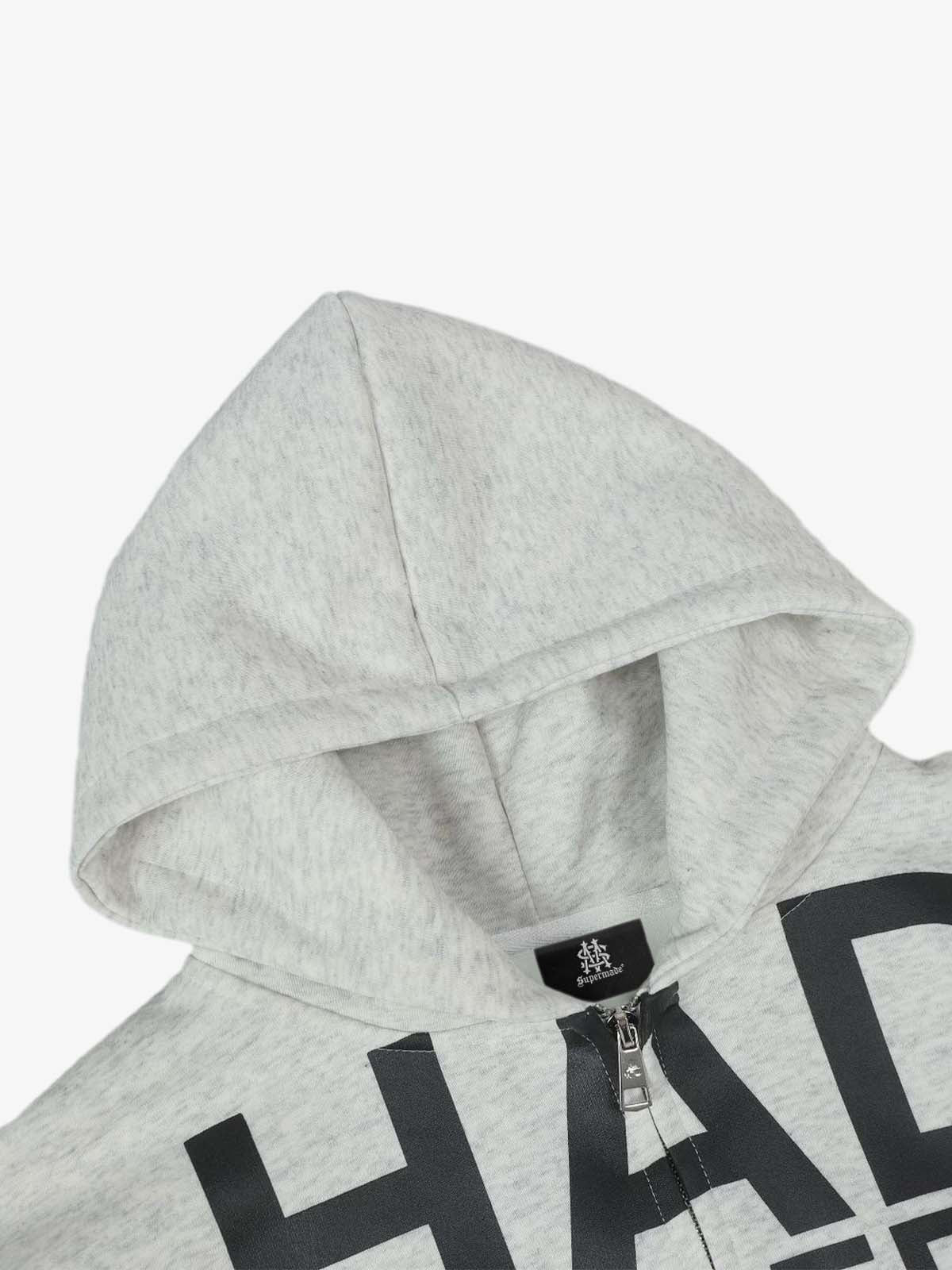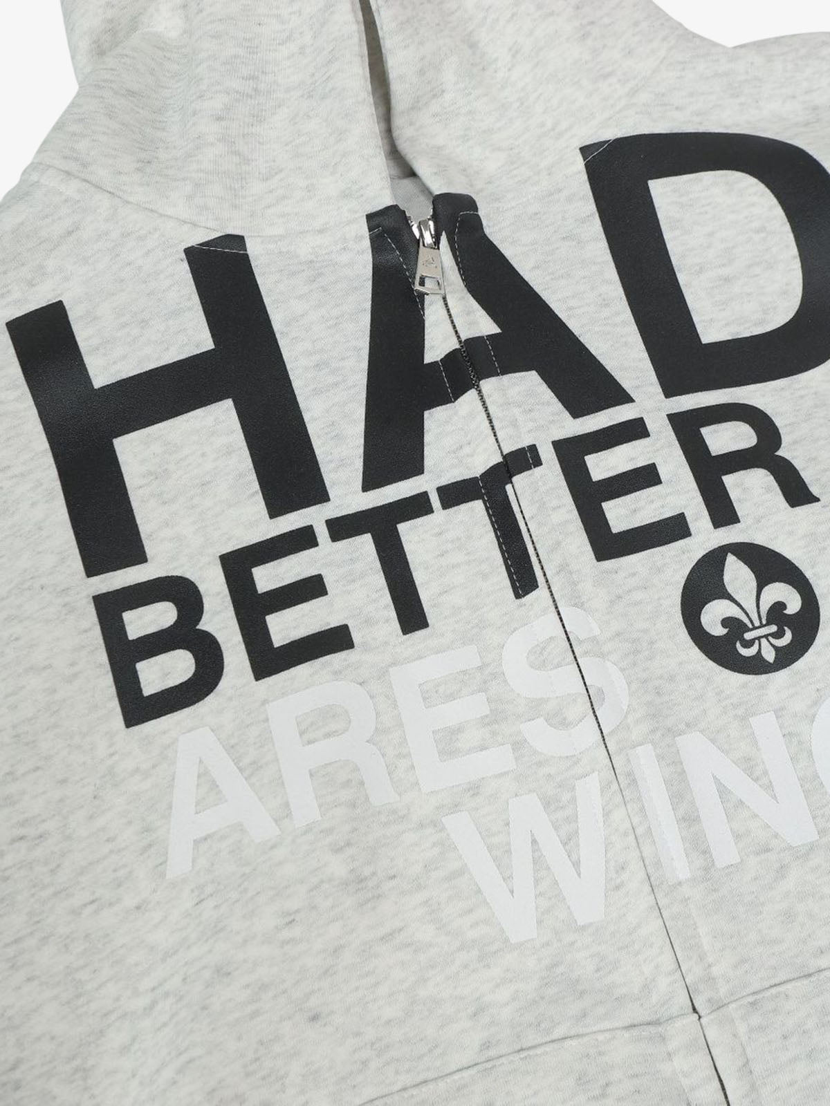 • Design Elements: Bold graphic text on the front, a convenient front pocket, and a classic hood design