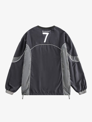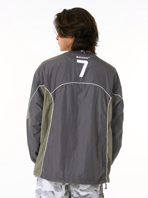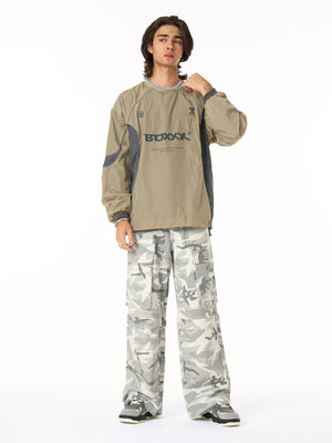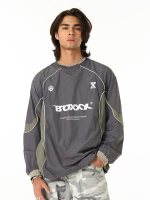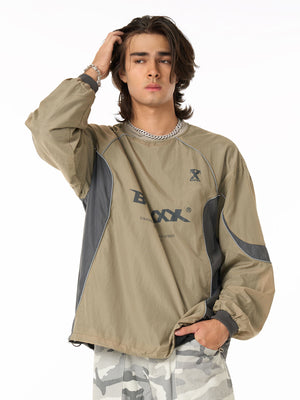 • Design Elements: Contrasting sleeve panels, bold front logo print, adjustable drawstrings at the hem