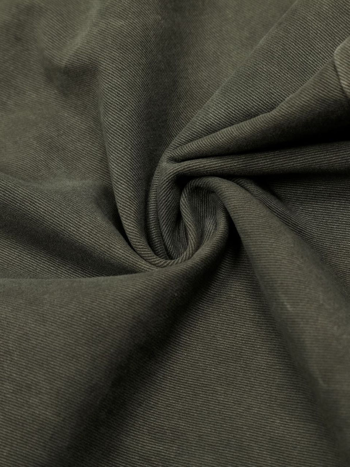 • Design Elements: Two side pockets with flap covers, relaxed fit, and a classic button closure