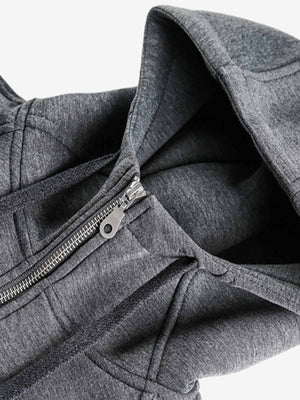 • Design Elements: Two side pockets, front zipper closure, adjustable drawstring hood