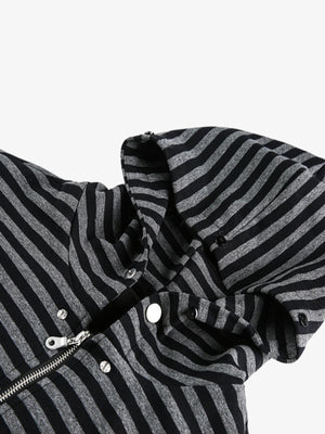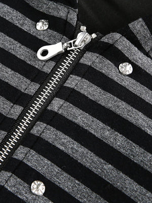 • Design Elements: Horizontal stripes pattern, detachable faux fur hood, front zipper closure