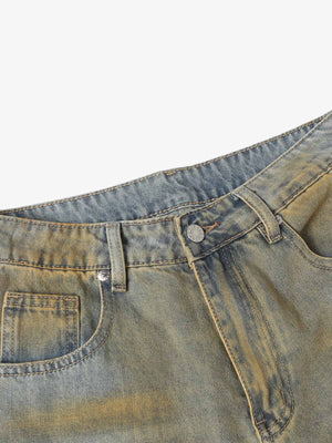 • Detail Features: Two side pockets, button fly closure, distressed design elements