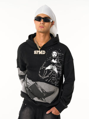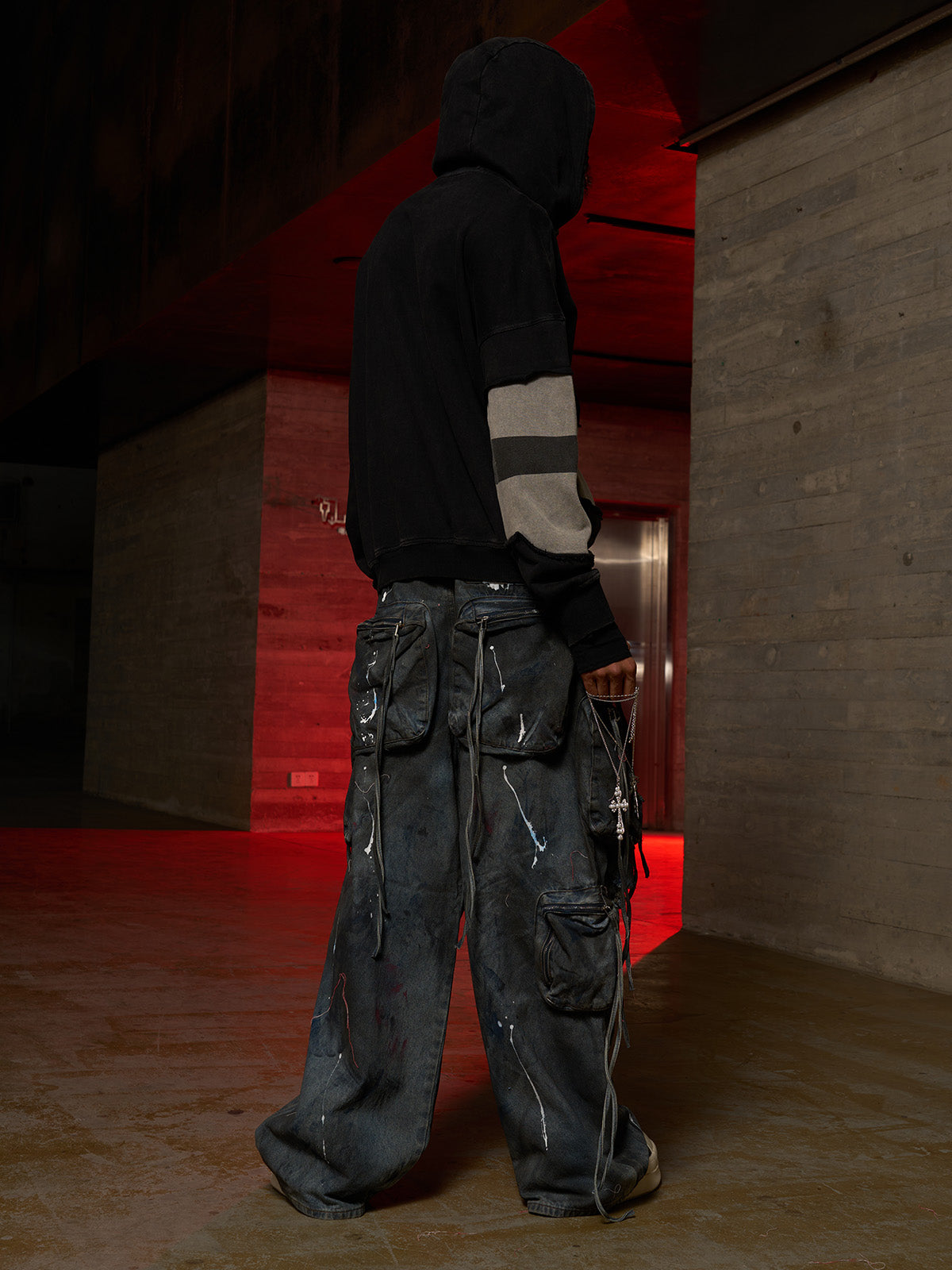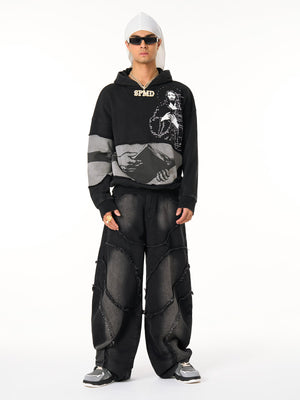 • Design Elements: Bold graphic print on the front, contrasting color block design, distressed details