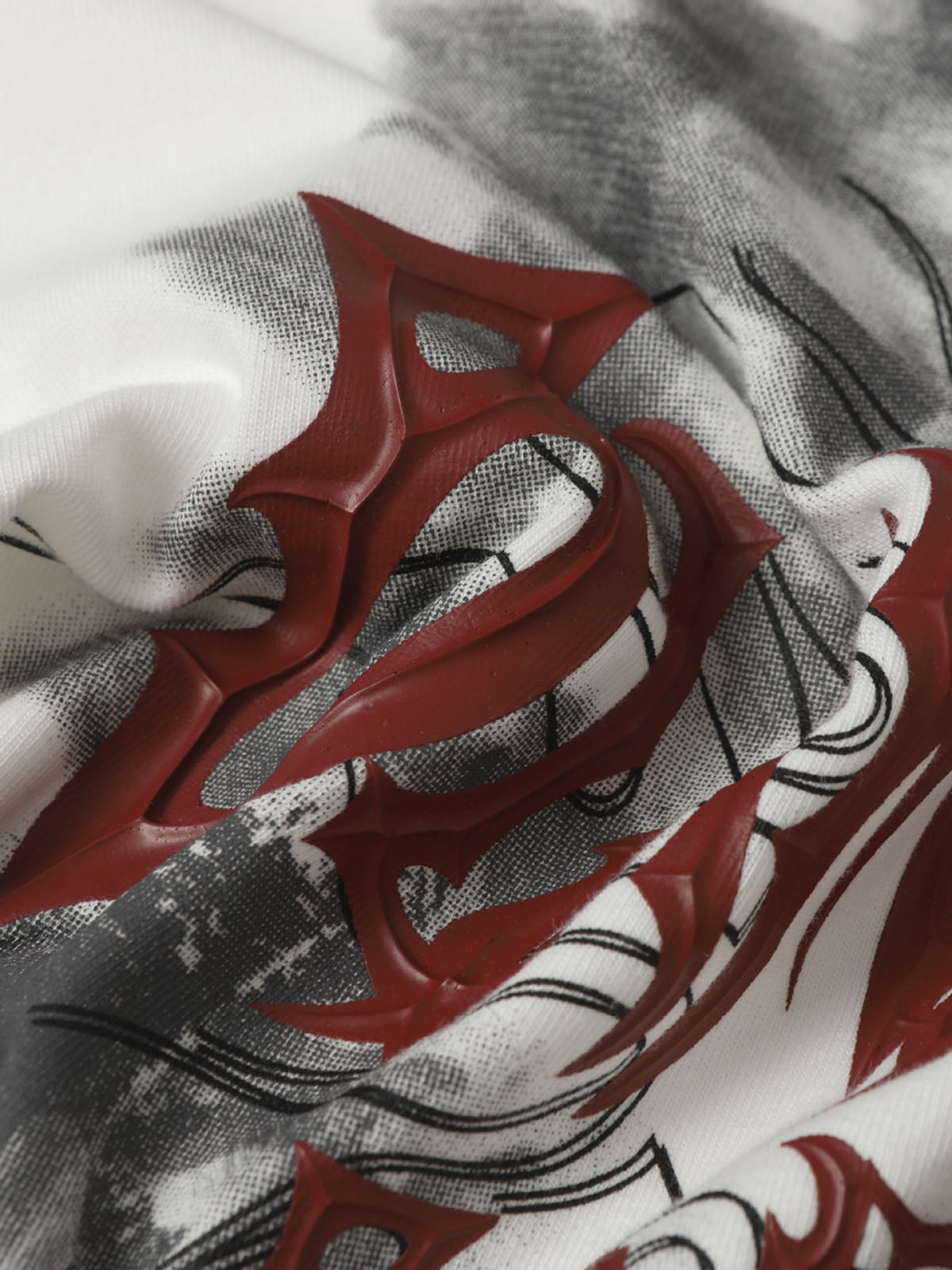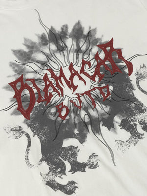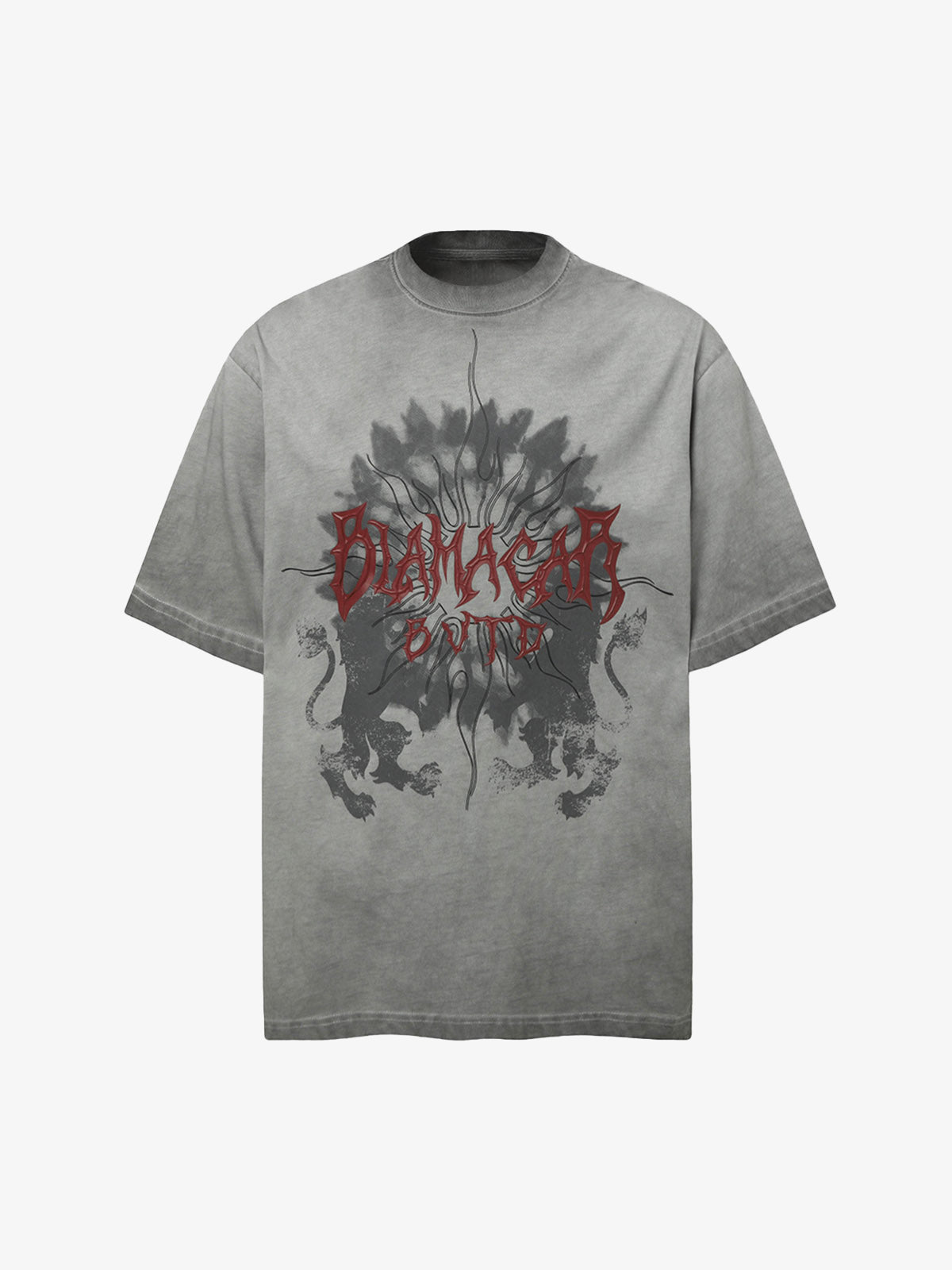 • Design Elements: Bold graphic print with intricate details, distressed look