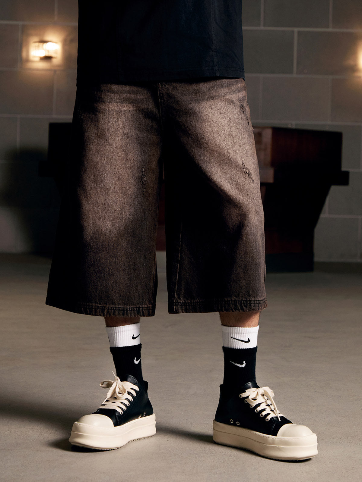 • Detail Features: Two Functional Side Pockets, High Waist Design, Slightly Distressed Look