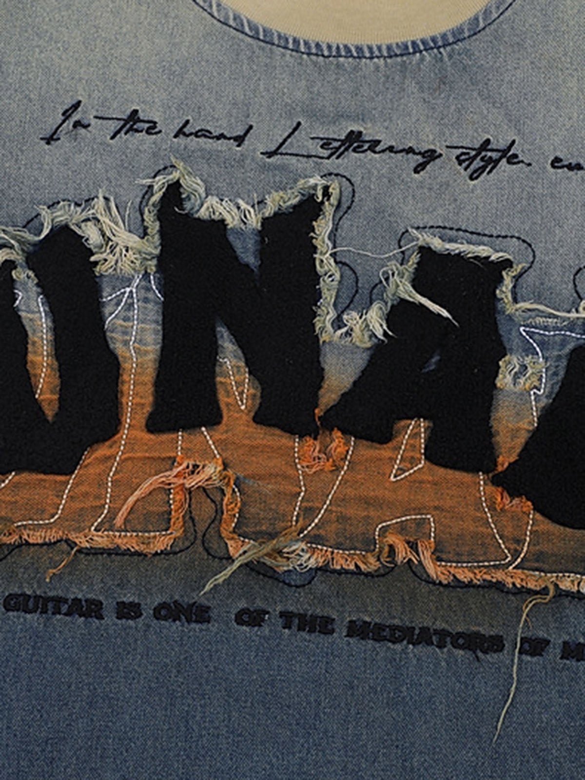 • Design Elements: Bold graphic print with distressed effect, stylish text design
