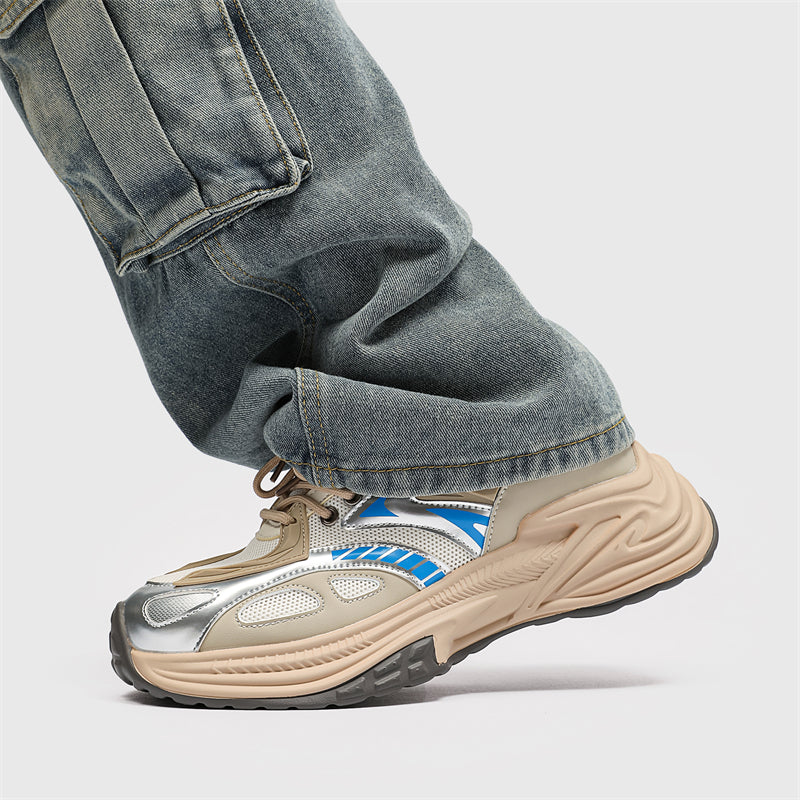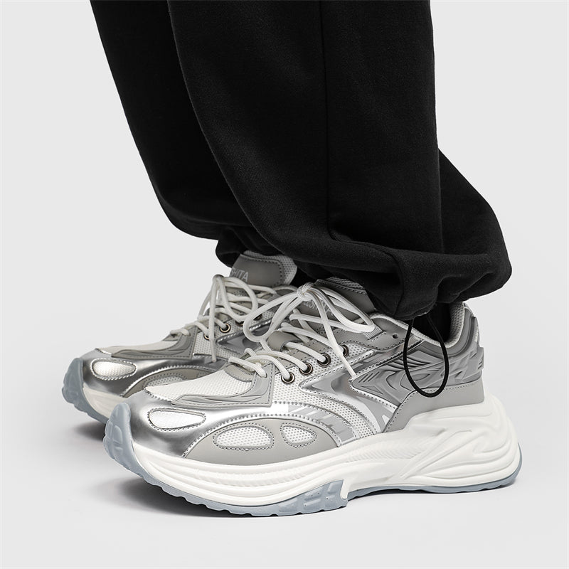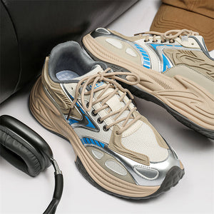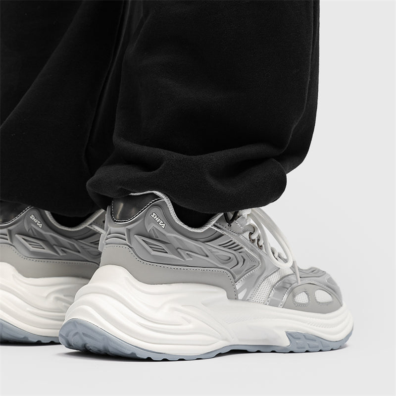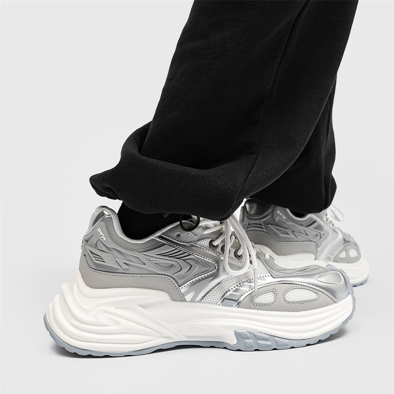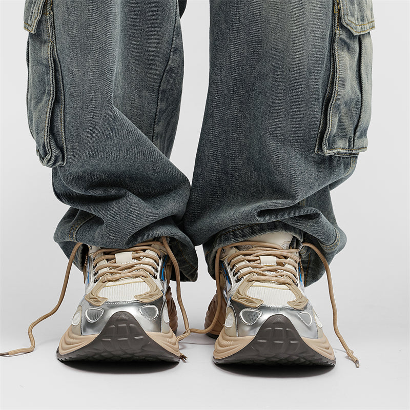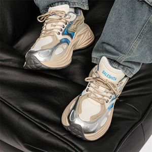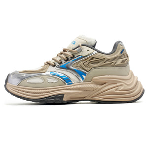 Turn your streetwear into a futuristic statement. Pair the Black/Blue/Silver with cargo joggers and a monochrome utility jacket for a cyber-athletic edge. Rock the Beige/Tan/Silver with cropped chinos and oversized knits for a refined retro-futurist vibe. Or keep it sleek with the White/Grey/Silver under tailored denim and minimal street layers.