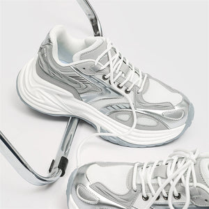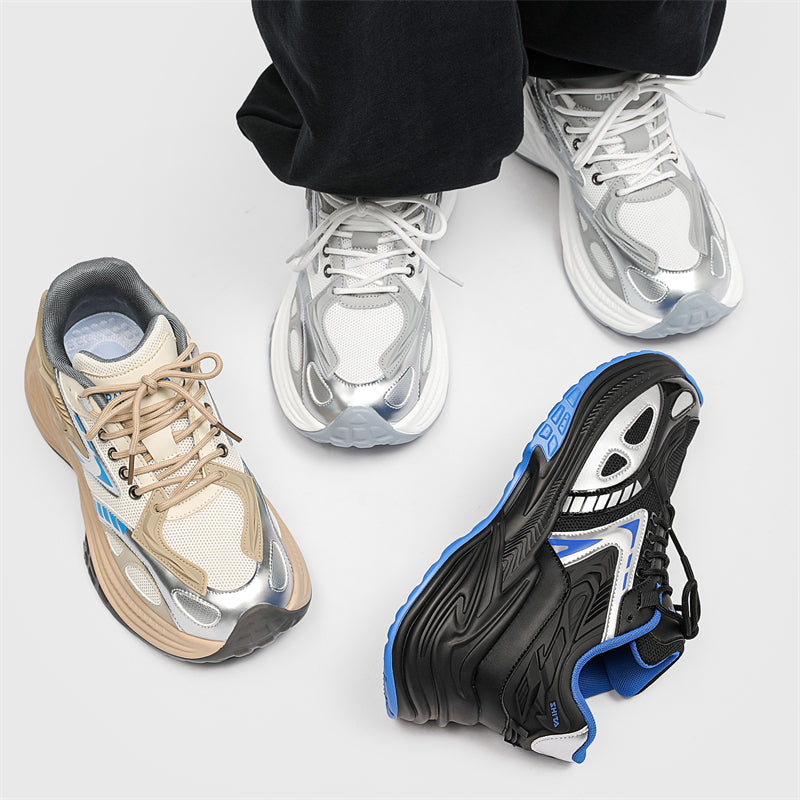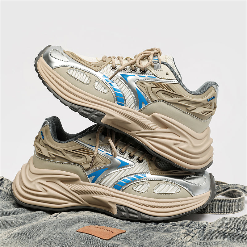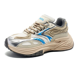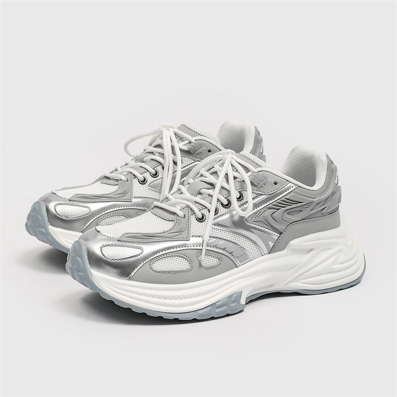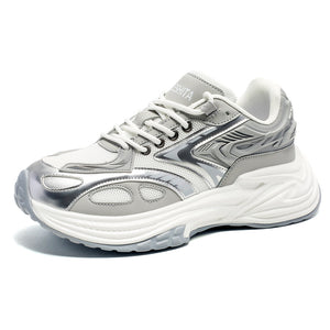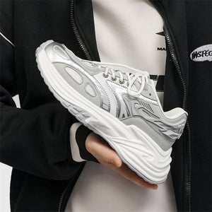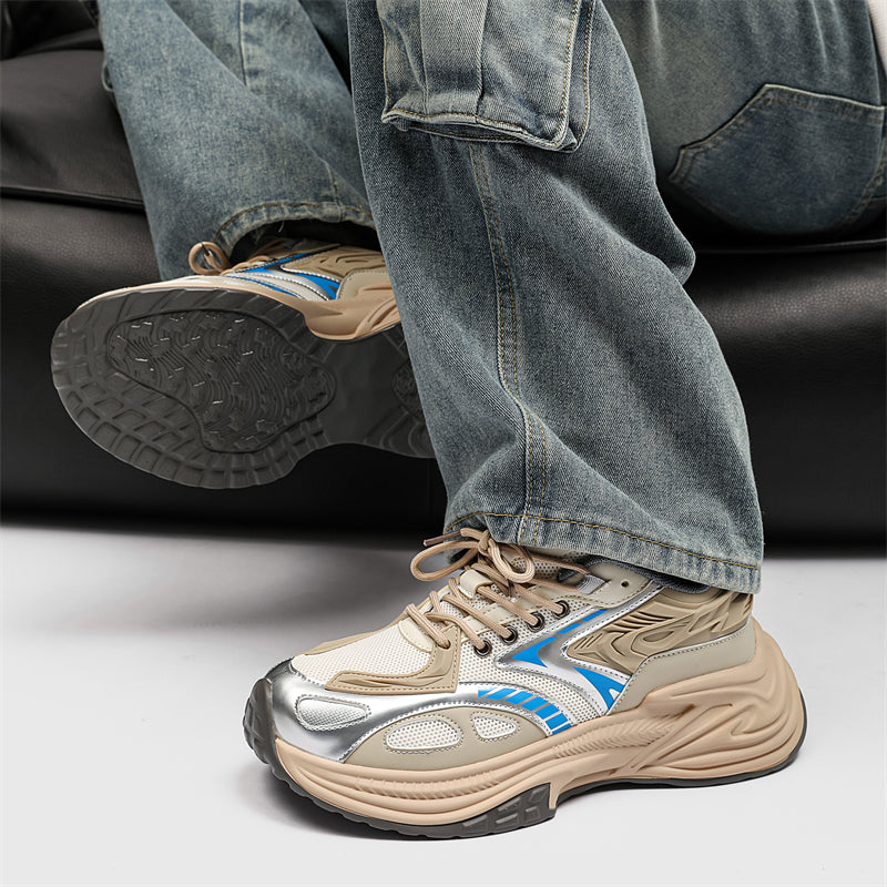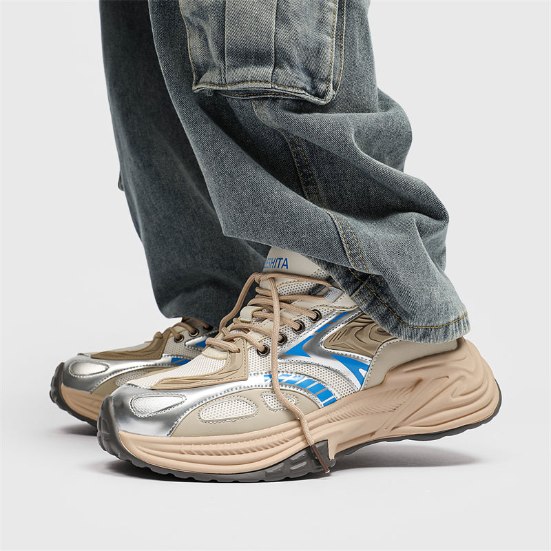 Turn your streetwear into a futuristic statement. Pair the Black/Blue/Silver with cargo joggers and a monochrome utility jacket for a cyber-athletic edge. Rock the Beige/Tan/Silver with cropped chinos and oversized knits for a refined retro-futurist vibe. Or keep it sleek with the White/Grey/Silver under tailored denim and minimal street layers.