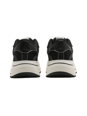 • Design Elements: Chunky sole design, white stitching details, sleek black upper