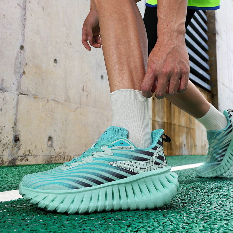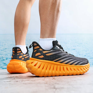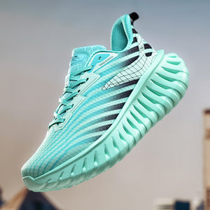 ✔ Aerodynamic Silhouette: The sculpted upper features a futuristic wave-like pattern, enhancing breathability while delivering a sleek, modern aesthetic.