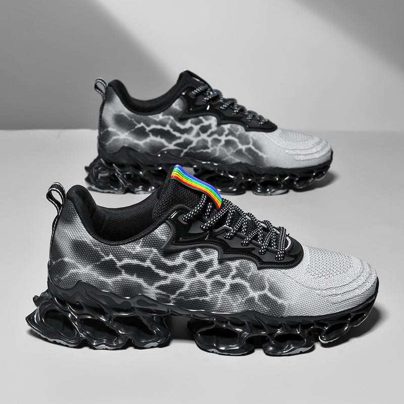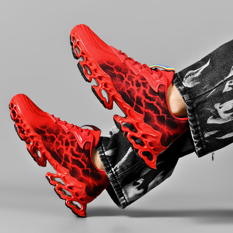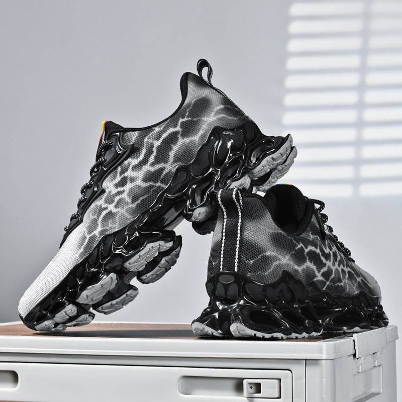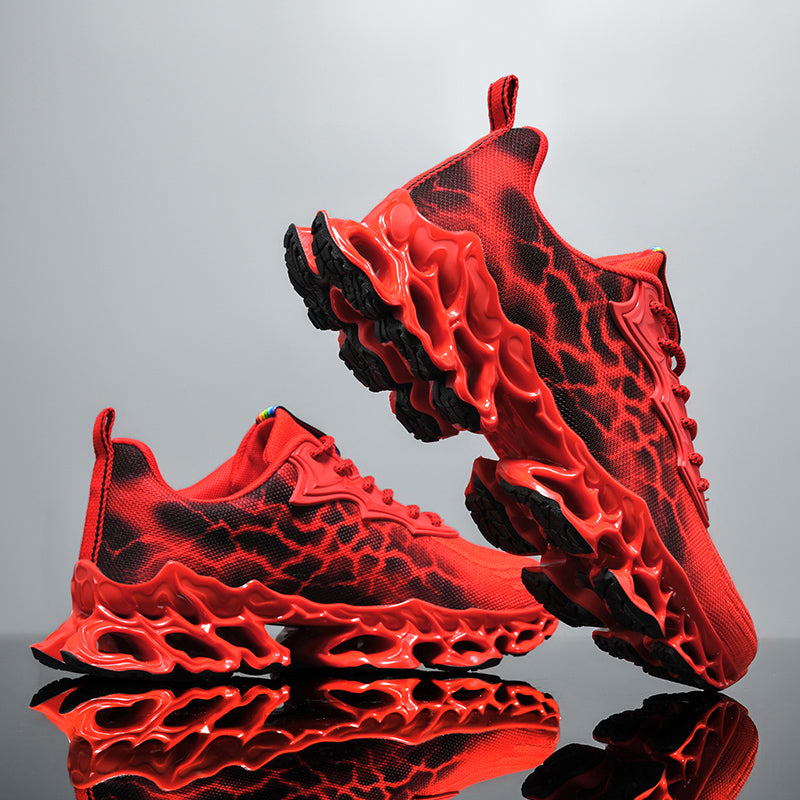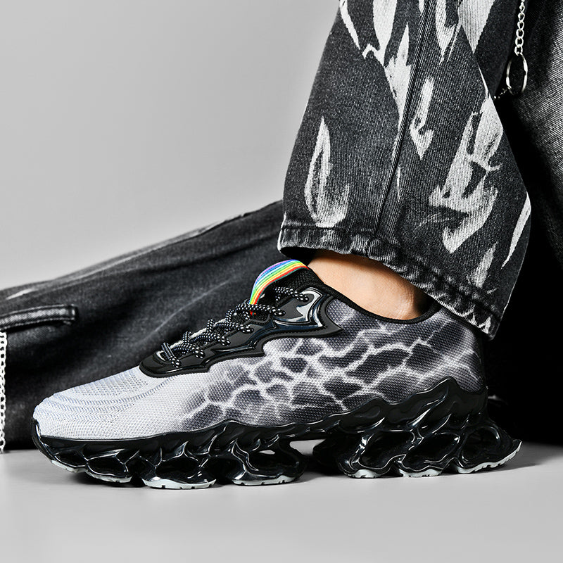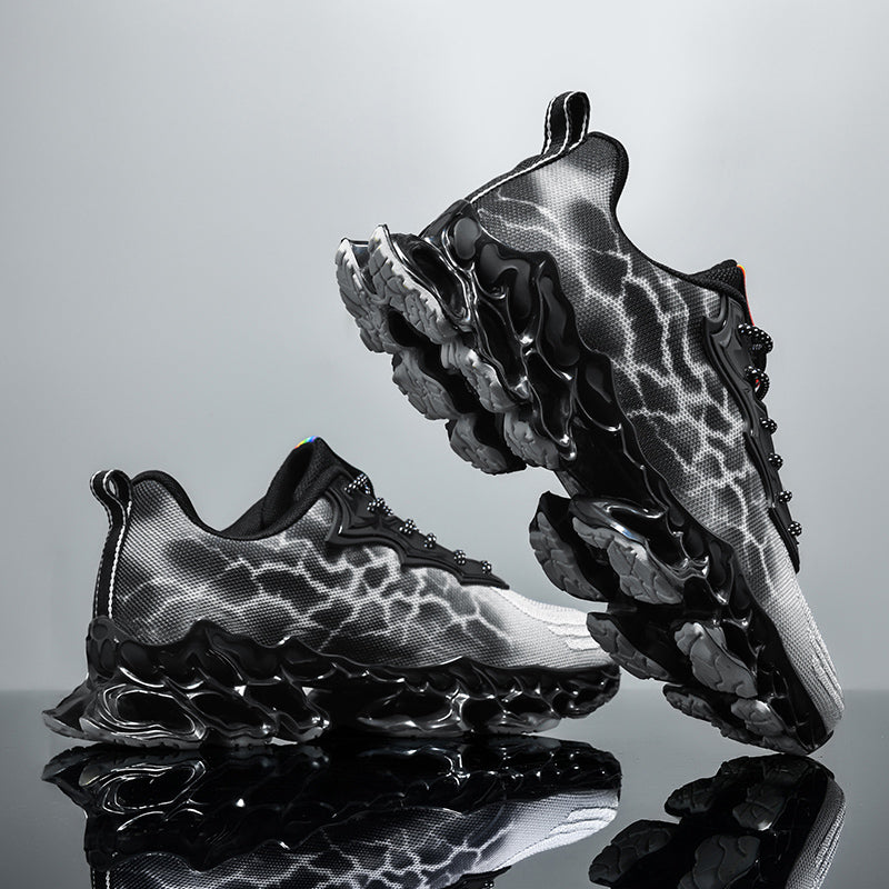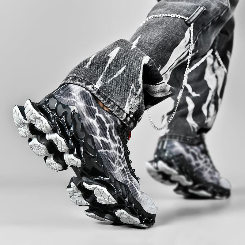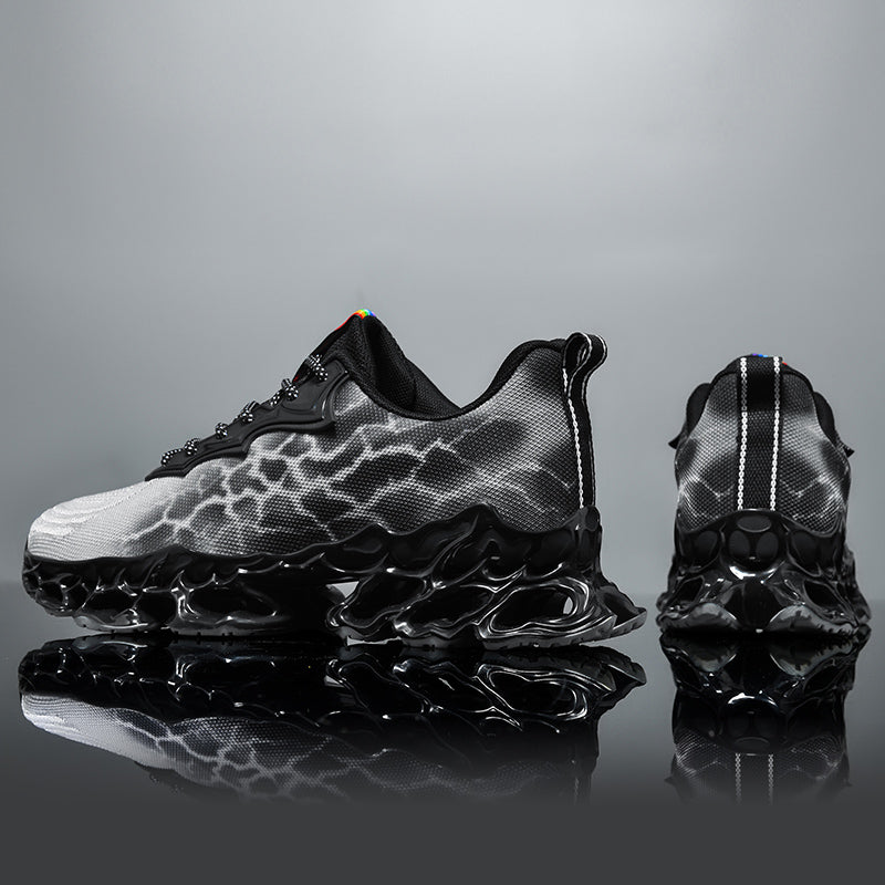 ✅ Lava-Printed Upper Texture: A thunderbolt-inspired gradient mesh pattern that visually crackles with raw motion and presence.