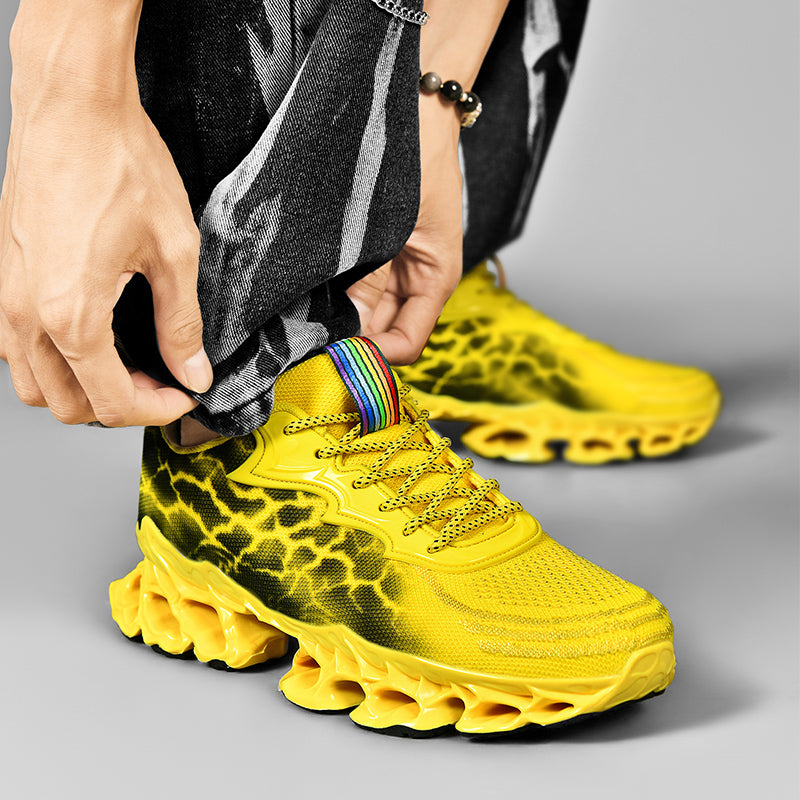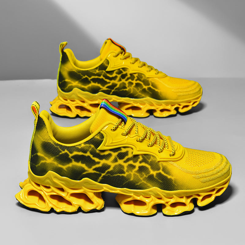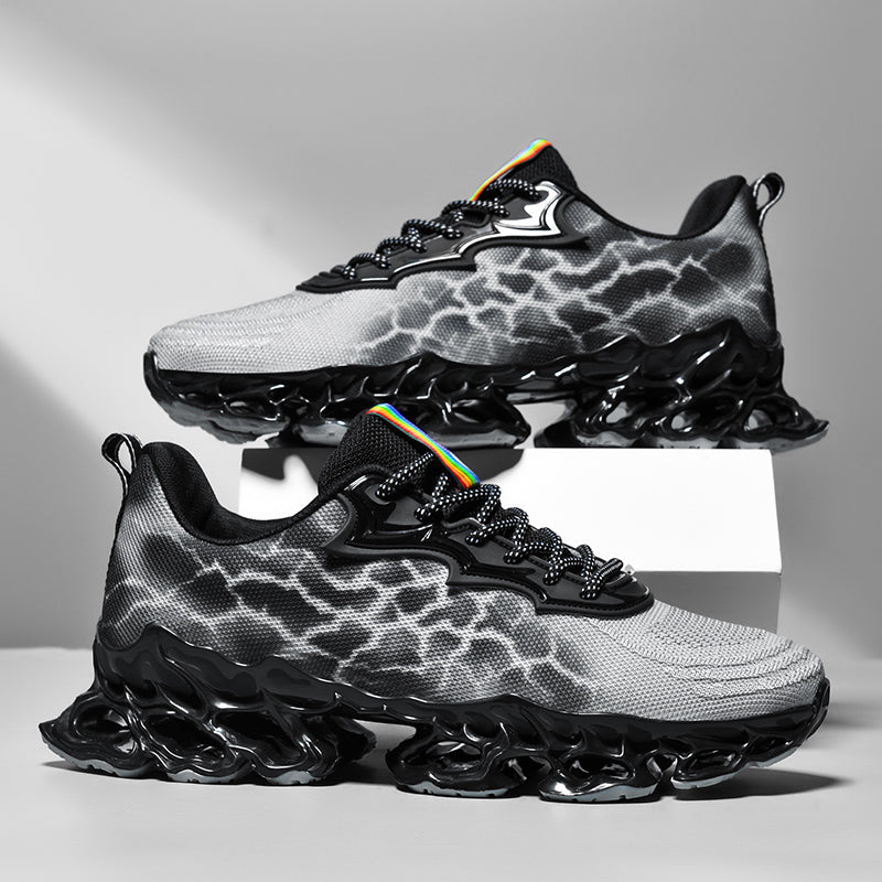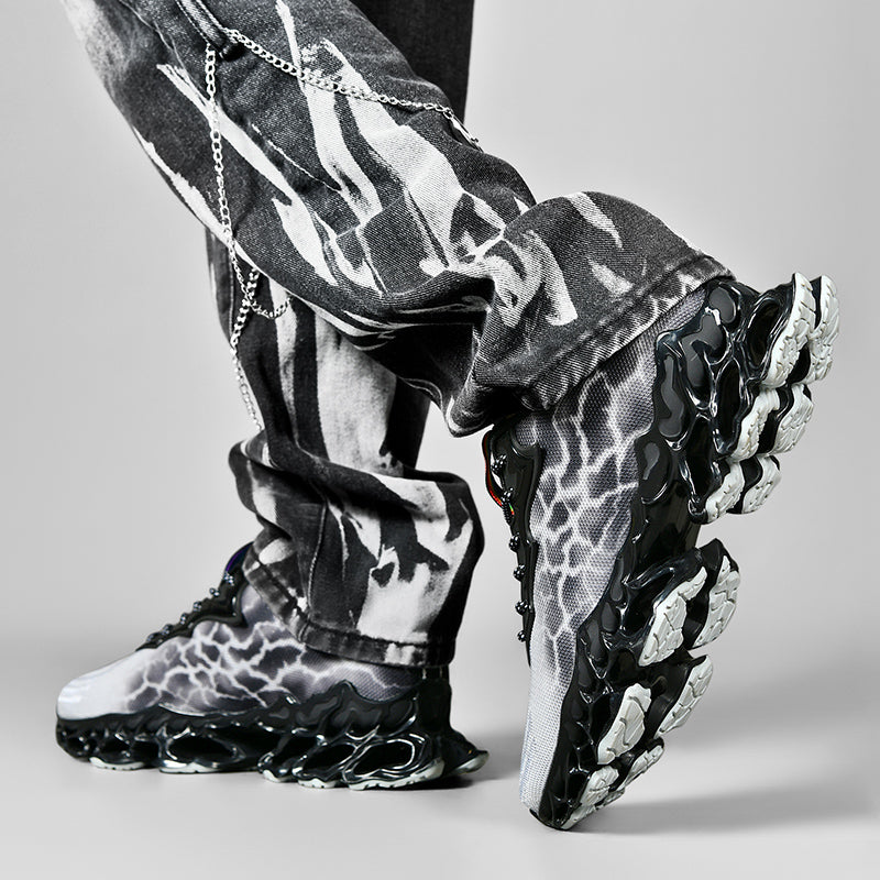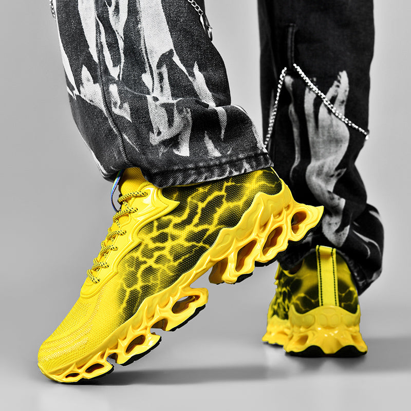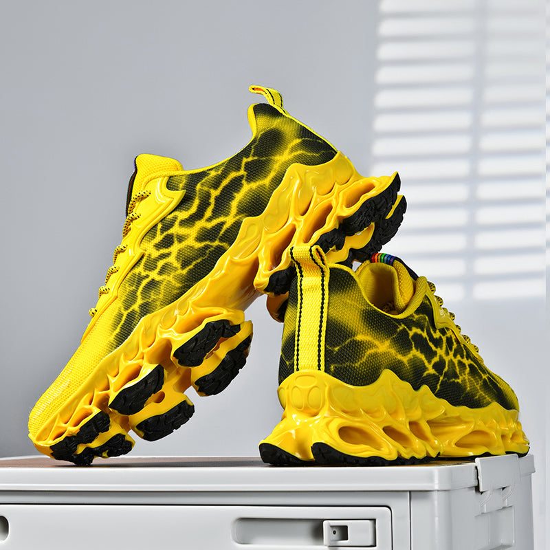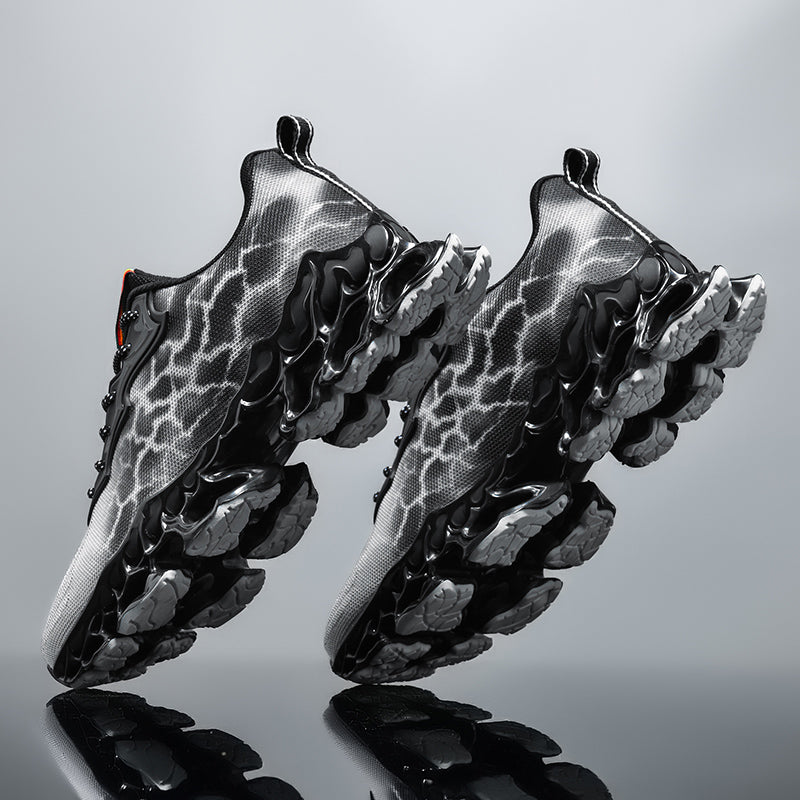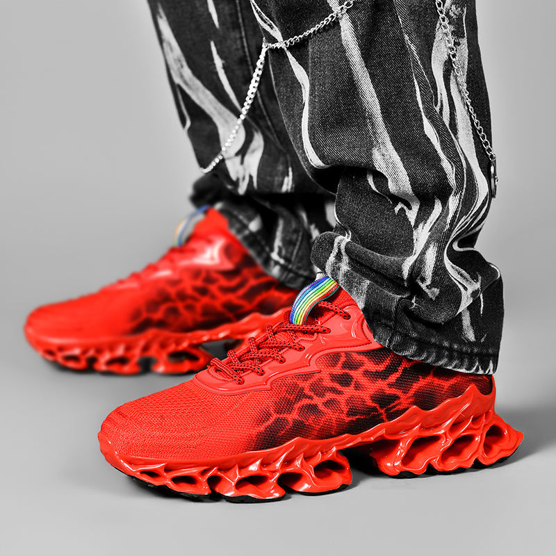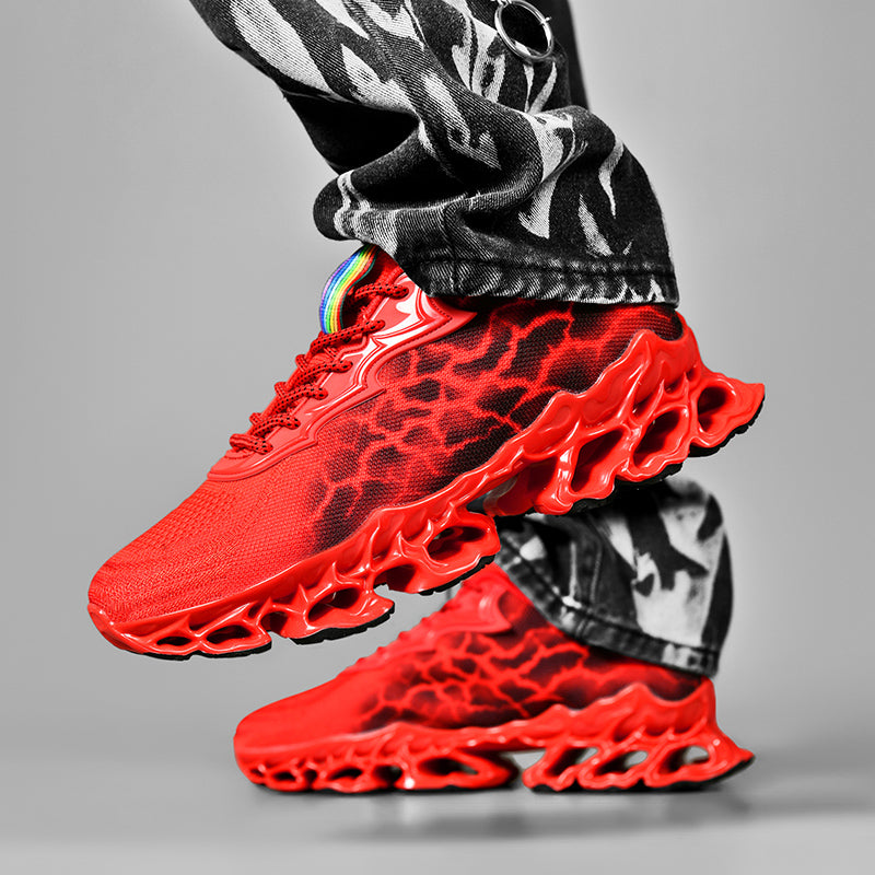 ✅ Lava-Printed Upper Texture: A thunderbolt-inspired gradient mesh pattern that visually crackles with raw motion and presence.
