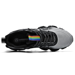 Signature Element: Rainbow stripe on tongue – an emblem of bold individuality woven into futuristic fashion.