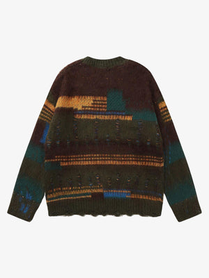 • Design Elements: Bold geometric patterns, vertical stripes, horizontal bands