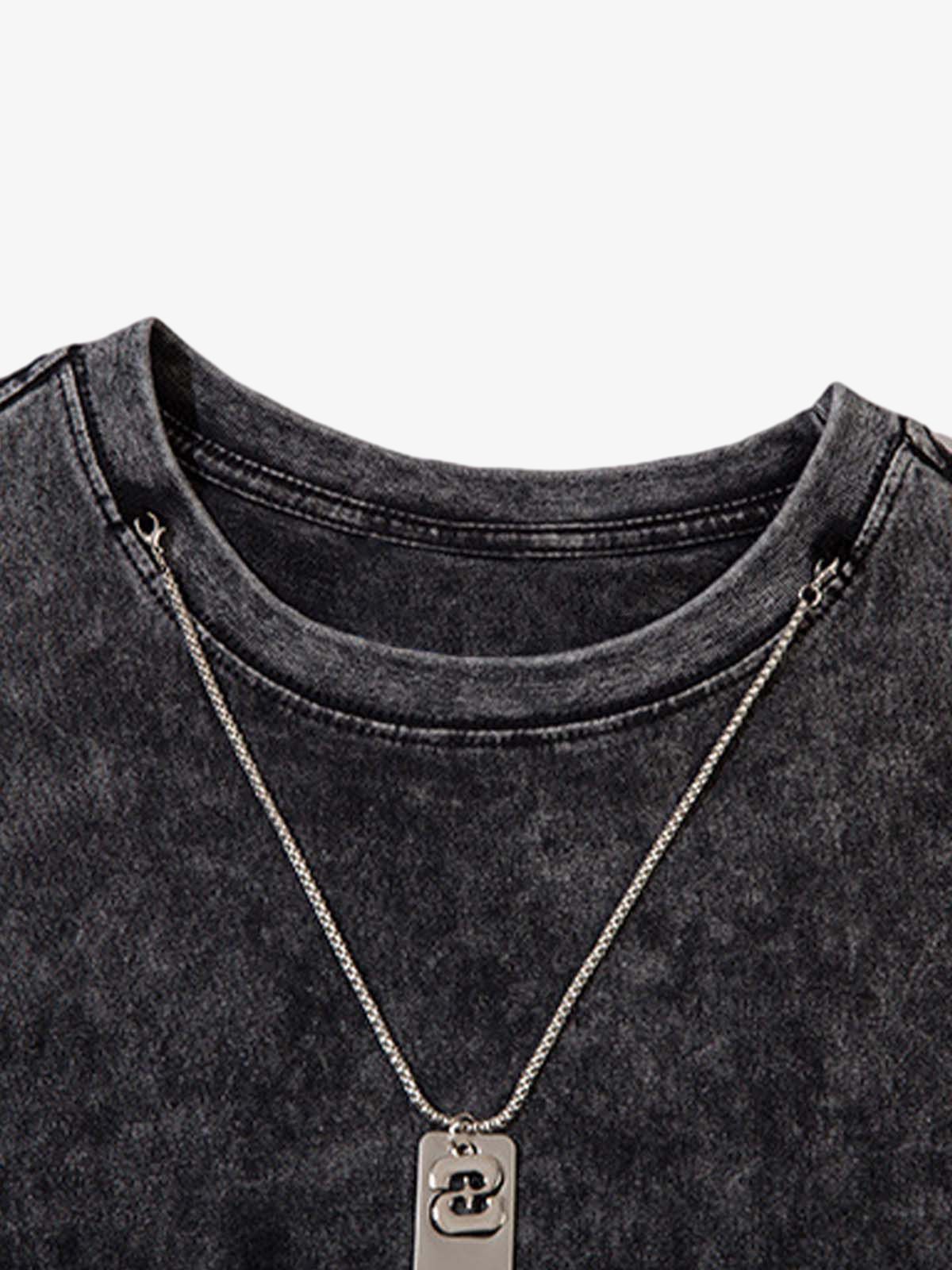 • Design Elements: Distressed details at the bottom hem, gradient tie-dye pattern, pendant necklace included