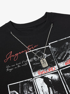 • Design Elements: Collage of musical instruments and inspirational phrases, cross graphic, necklace pendant detail