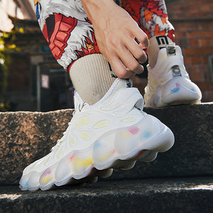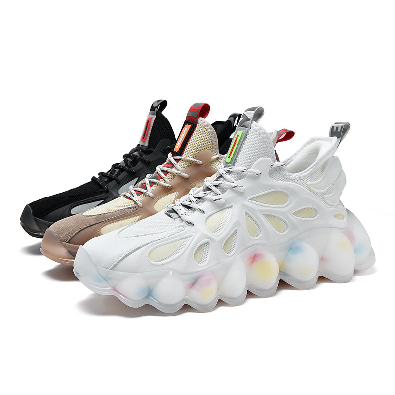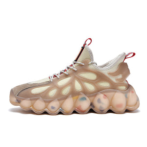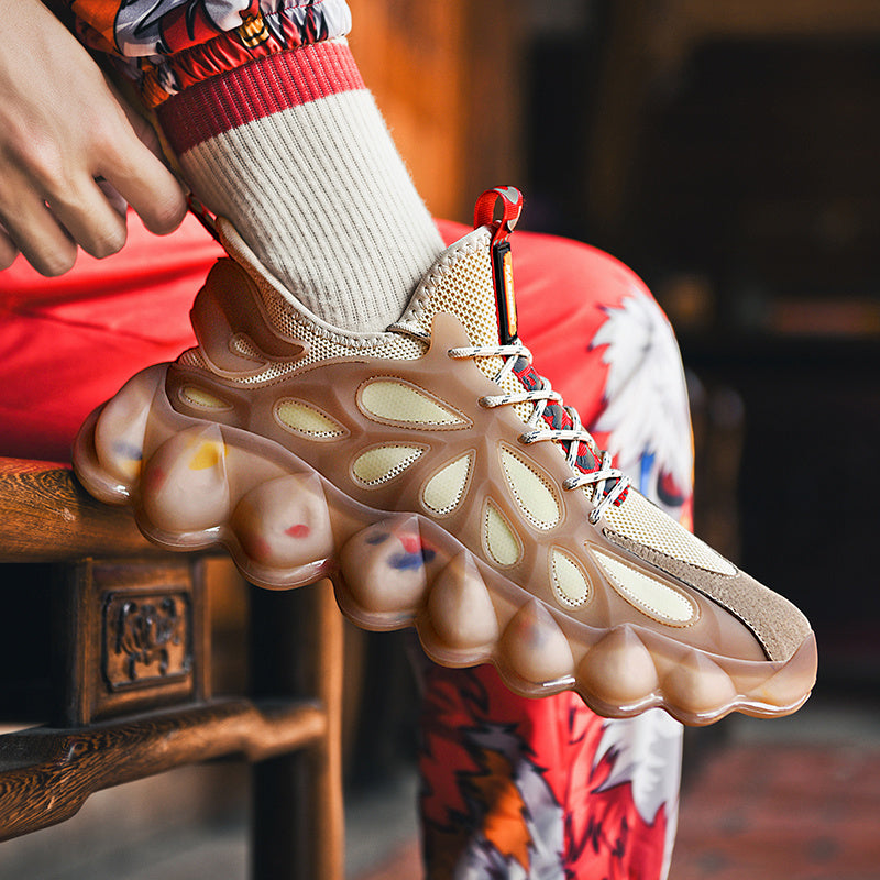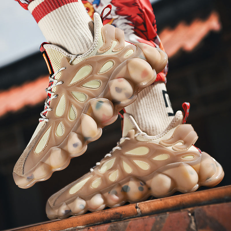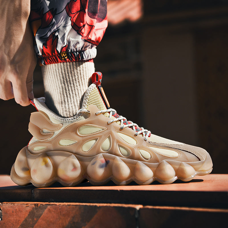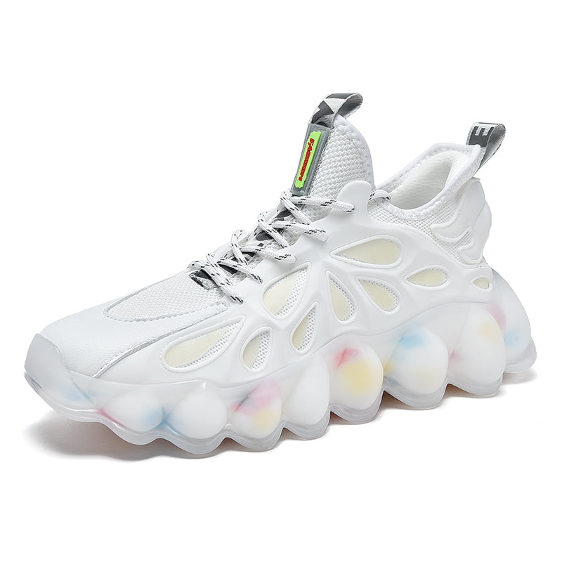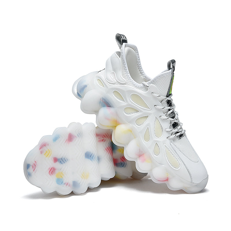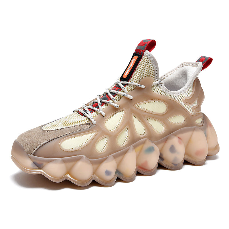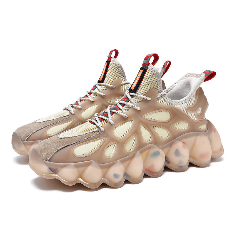 • Abrasion-resistant distinctive translucent rubber outsoles
