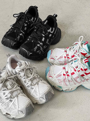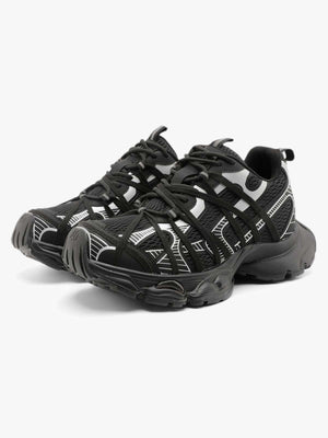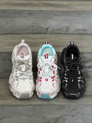 • Design Elements: Bold color contrast, geometric patterns, layered sole design