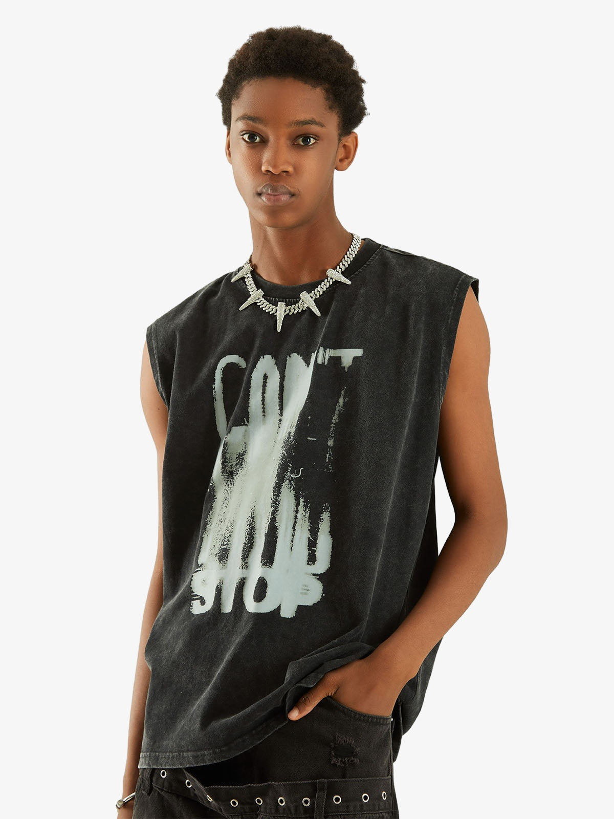 • Detail Features: Bold Graphic Print, Sleeveless Design, Crew Neck