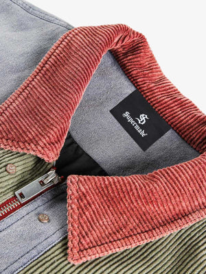 • Design Elements: Contrasting color blocks, corduroy accents, front zipper closure