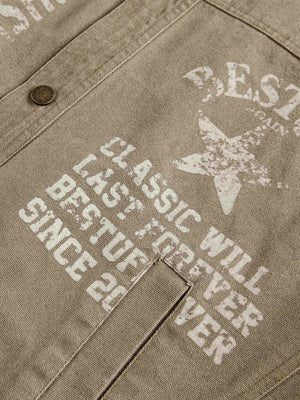 • Design Elements: Bold graphic prints, star emblem, text overlays