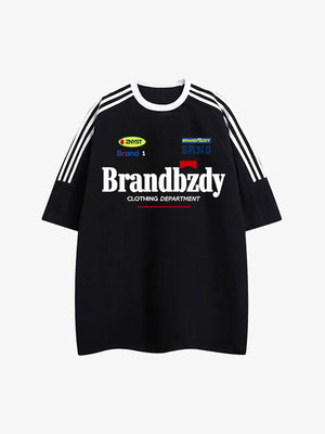 • Detail Features: Graphic Print, Striped Sleeves, Crew Neck