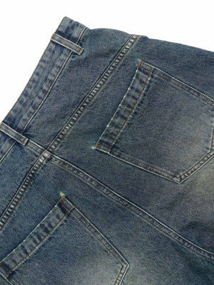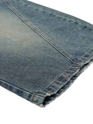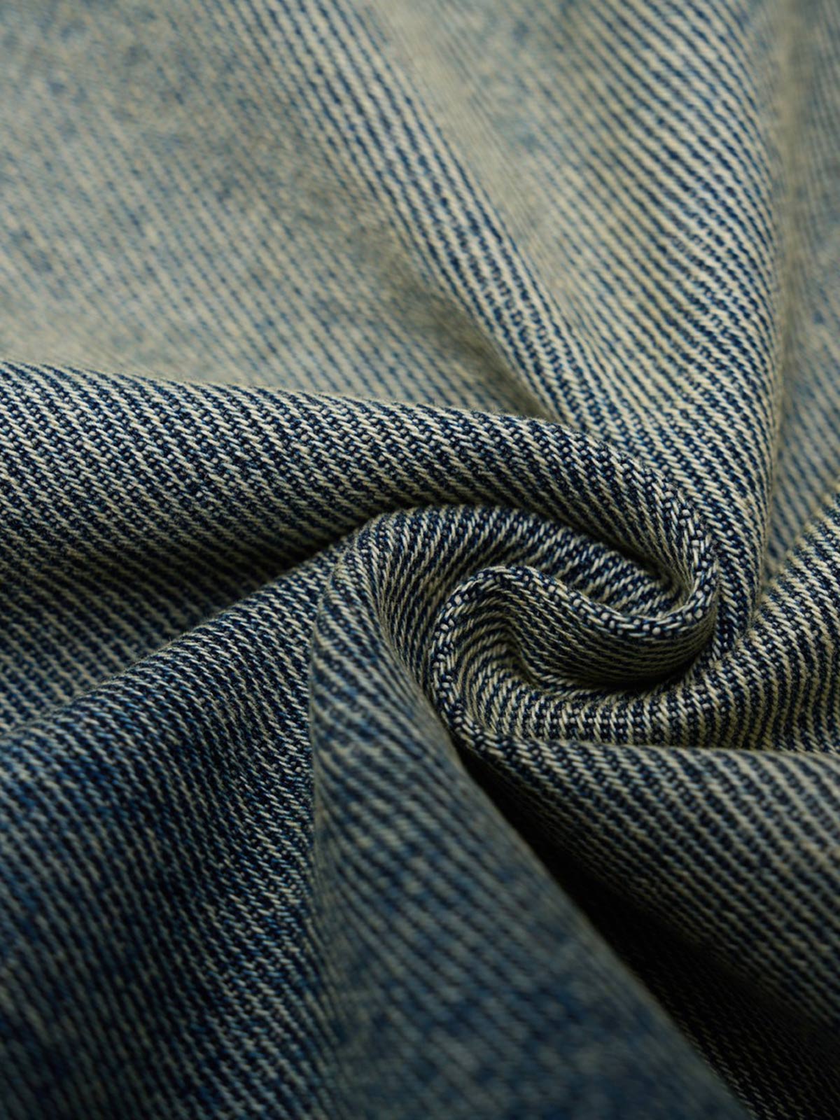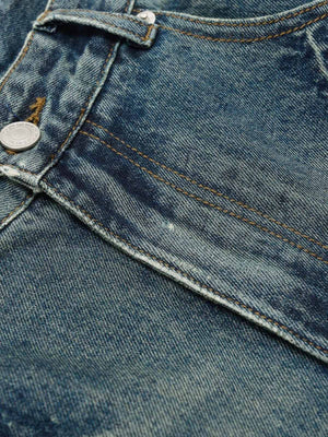 • Design Elements: Classic five-pocket design, button fly closure, frayed hem detail