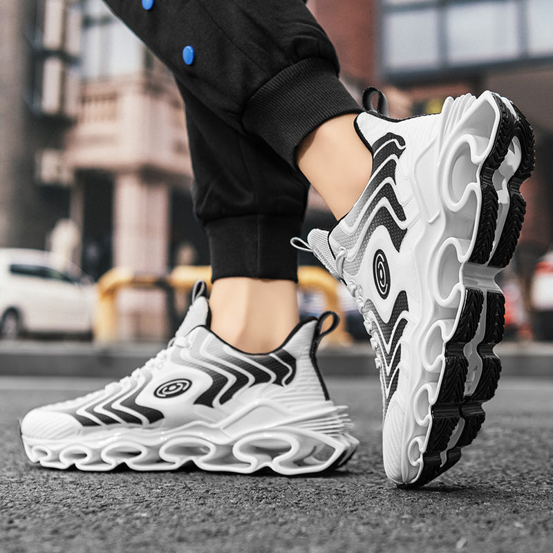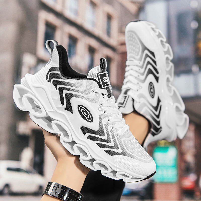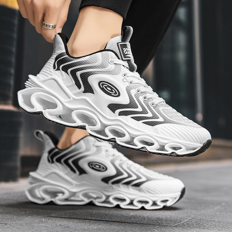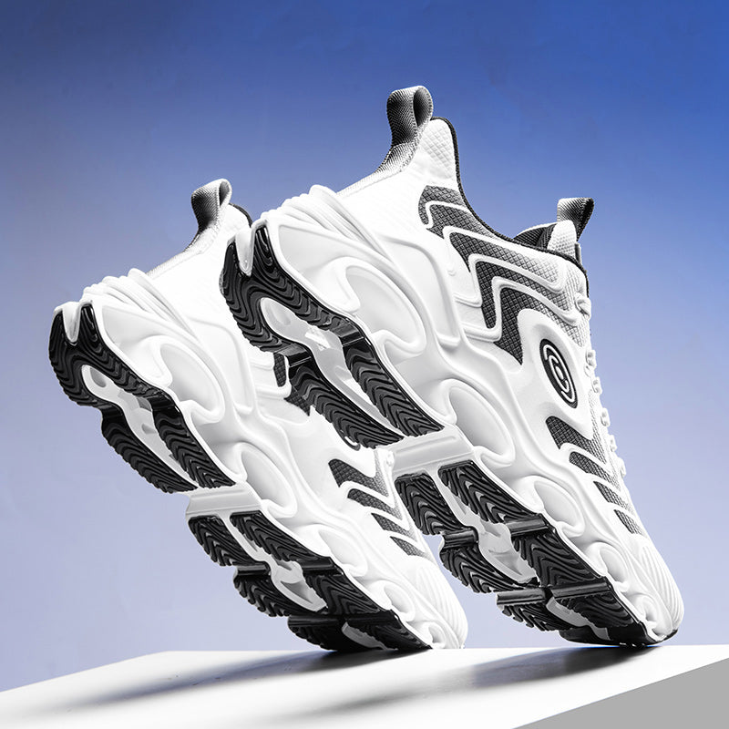 Futuristic Aesthetic – Striking wave patterns and sculpted midsoles create a bold, standout silhouette.
