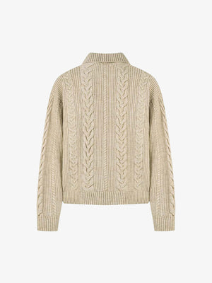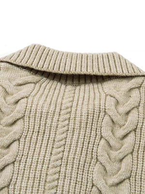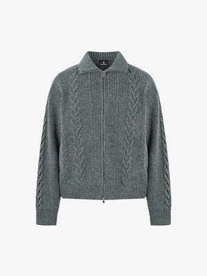 • Design Elements: Braided cable knit pattern, full-length front zipper, ribbed cuffs and hem