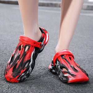 Pair the Red/Black slides with jet-black joggers and a techwear hoodie for hyper-modern energy.