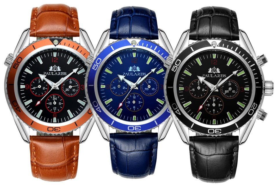Luxury Automatic Bond Chrono Watch - Leather Strap