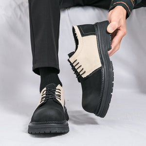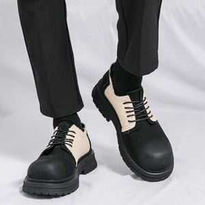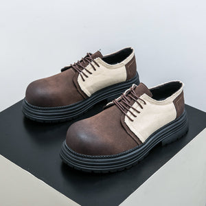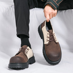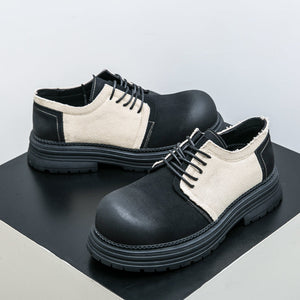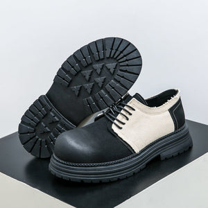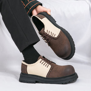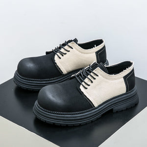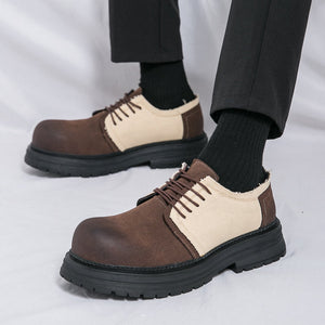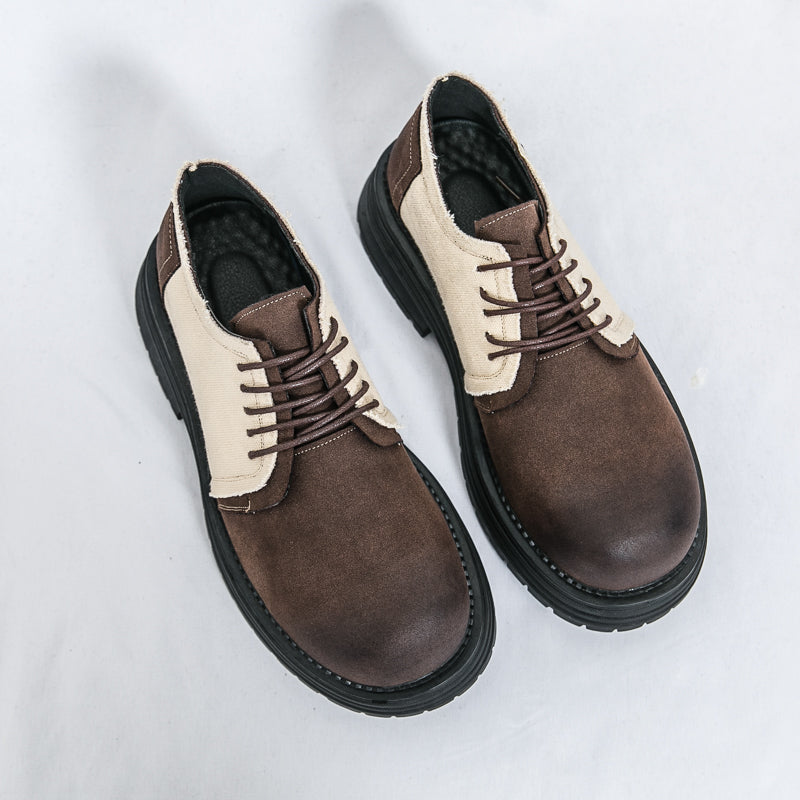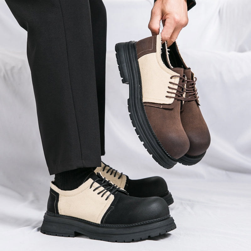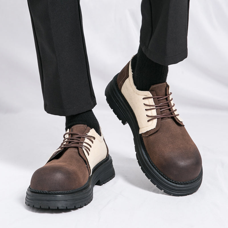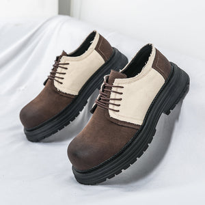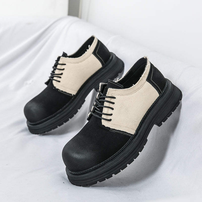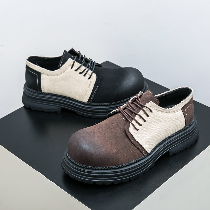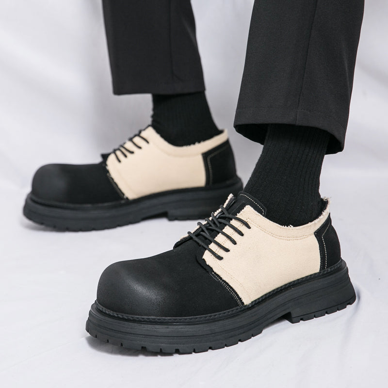 Type: Men's Derby-Style Rugged Shoes with Canvas Panels and Chunky Sole