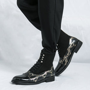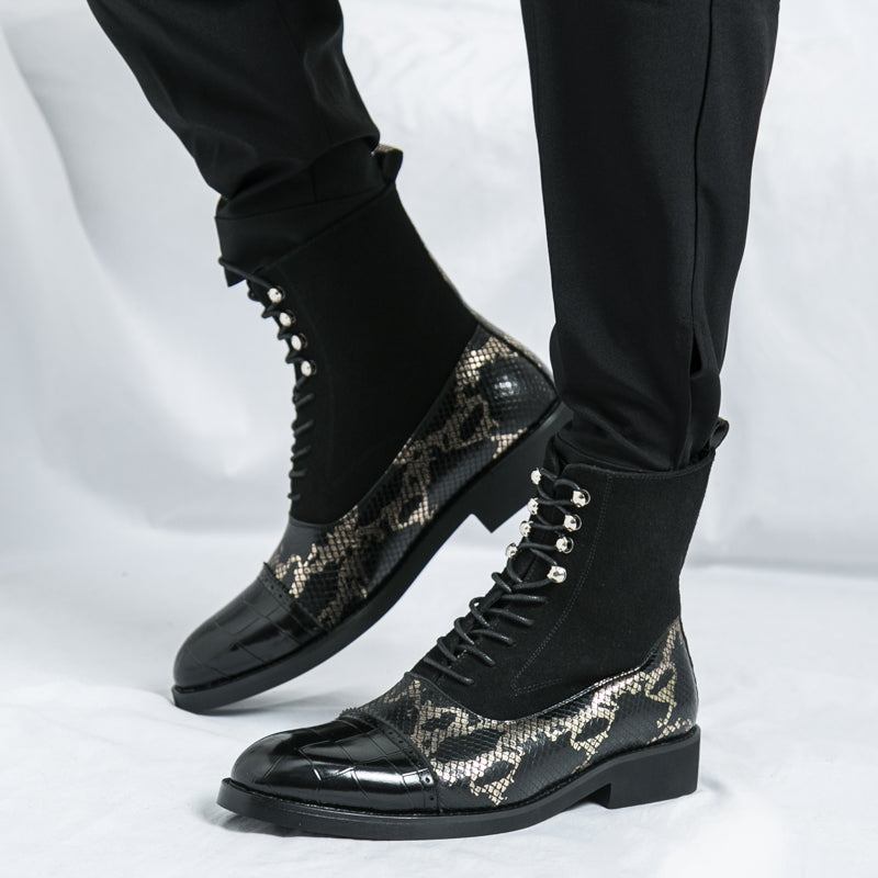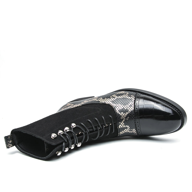 Type: Luxe Croc-Skin & Faux Snake-Patterned Lace-Up Boots