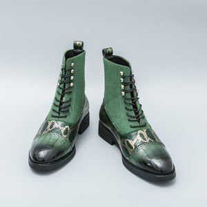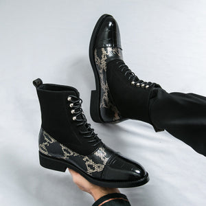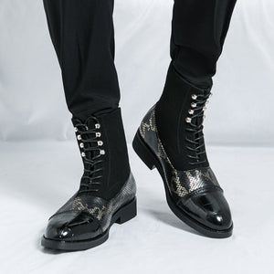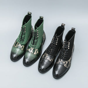 Step into a world of elegance with these Luxe Croc-Skin & Faux Snake-Patterned Lace-Up Boots. Designed for those who dare to stand out, these boots redefine luxury footwear with a blend of classic design and contemporary aesthetics.